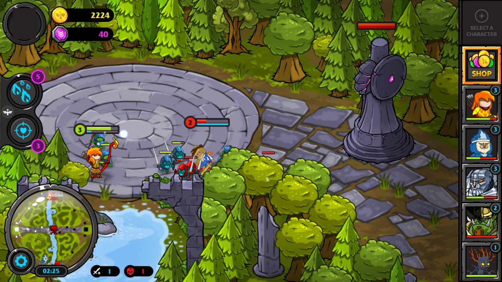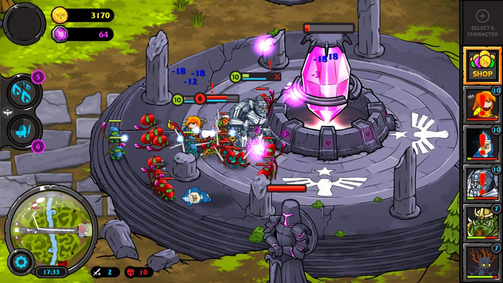 Mini War – візьміть під свій контроль команду відважних героїв і дайте відсіч всім противникам. Подорожуйте по красивих локаціях ігри і вступайте в боротьбу з сильними ворогами, застосовуючи різні здібності своїх воїнів. Покажіть на ділі всі свої навички чудового стратега, який зможе перемогти всіх ворогів на полях битв і розробити свою непереможну тактику ведення бою. Вашої головним завданням у цій грі буде дістатися до ворожого кристала і знищити його, при цьому захищаючи свою базу від вторгнення ворогів. Отримуйте цінну винагороду за кожного знищеного супротивника і купуйте нову зброю і спорядження, для своїх воїнів посилюючи їх.