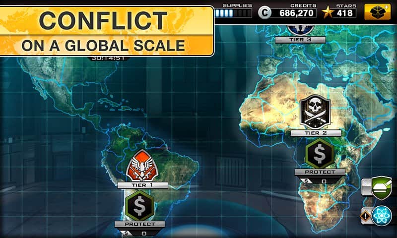 Modern Command - стратегія на андроїд, в якій вам належить побудувати найсучаснішу базу для того, щоб запобігти загрозу з боку терористів. Для побудови бази вам будуть даватися найсучасніші технології і зброю. Почніть боротьбу проти армії ворогів, які загрожують вам і вашій країні Південній Америці, Африці, Європі, Азії. Розвивайте свою стратегію, застосовуйте нові засоби захисту, а також виконуйте різні місії, покладені на вас. Об'єднуйте свої зусилля з друзями і збільшуйте свої сили.
