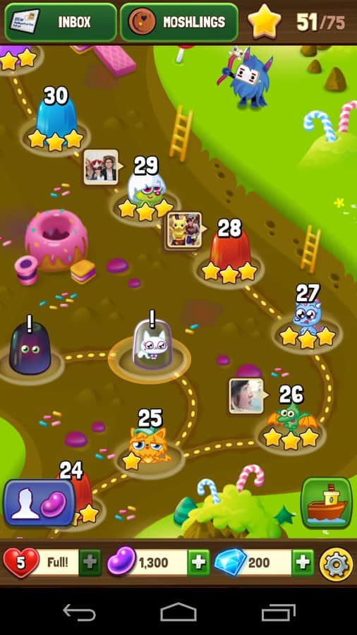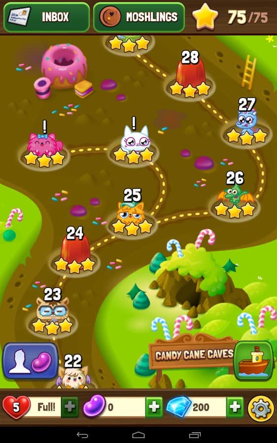 Moshling Rescue! - Очередная игра по типу три в ряд на андроид. Теперь вы будите перемещать желейные конфеты. Если вам удастся пройти все уровни, вы сможете спасти своего друга, который не по своей воле попал в этот красочный желейный мир. Кроме того, в игре новый взгляд на прохождение уровней, который делает игру намного привлекательней и веселей. Не пропустите поиграть в эту новую увлекательную желейную игру.