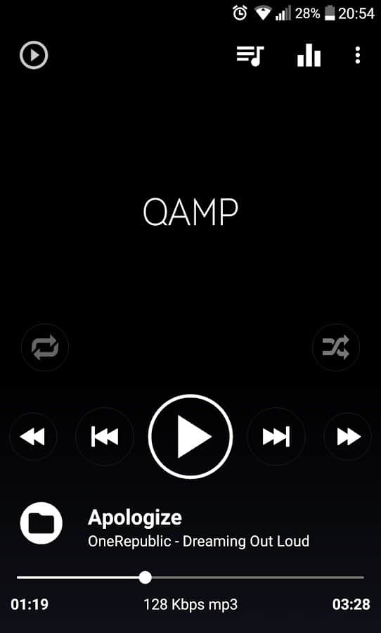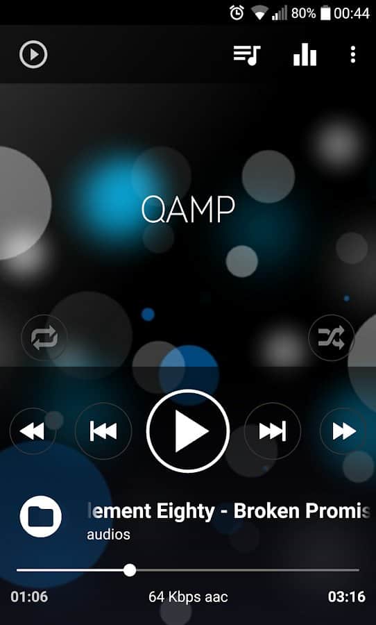 з додатком Pro Qamp - Mp3-плеєр прослуховування музики принесе масу задоволення і дозволить насолодитися приємним звучанням і безліччю корисних функцій. Особливості: Наявність 10-смугового еквалайзера; найкращі звукові ефекти; Створення власного користувальницького пресета; Підтримка форматів: mp3, mp4, ogg, wma, flac, wav, ape, wv, tta, mpc, aiff; Регулювання басів; Ефекти: мікшер, баланс, stereo; Програвання треків з бібліотеки або із створених папок; Моментальний пошук композиції; Призупинення відтворення під час телефонної розмови; Вбудований таймер сну; Кілька тем для налаштувань дизайну екрану.