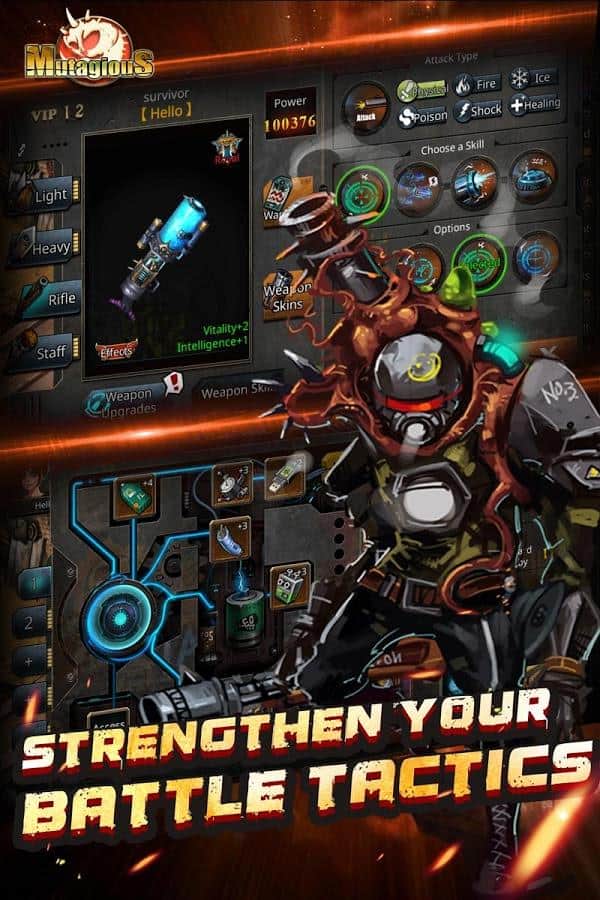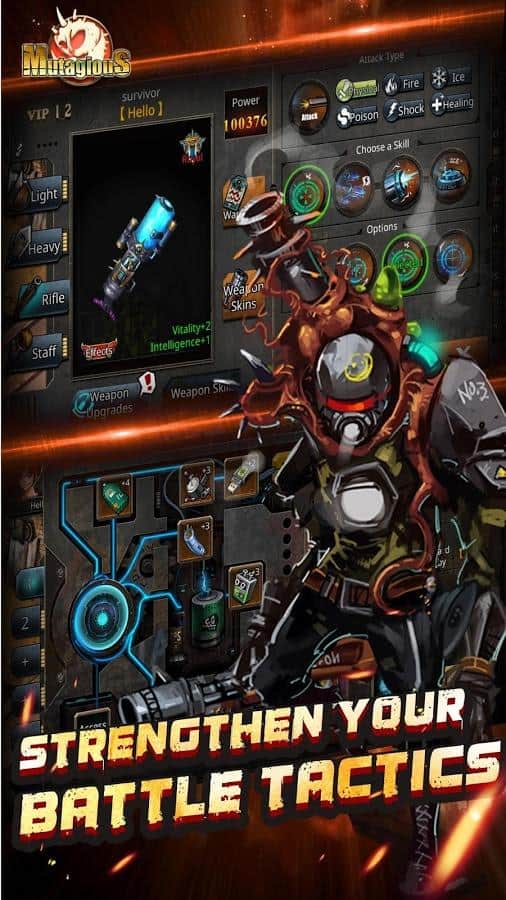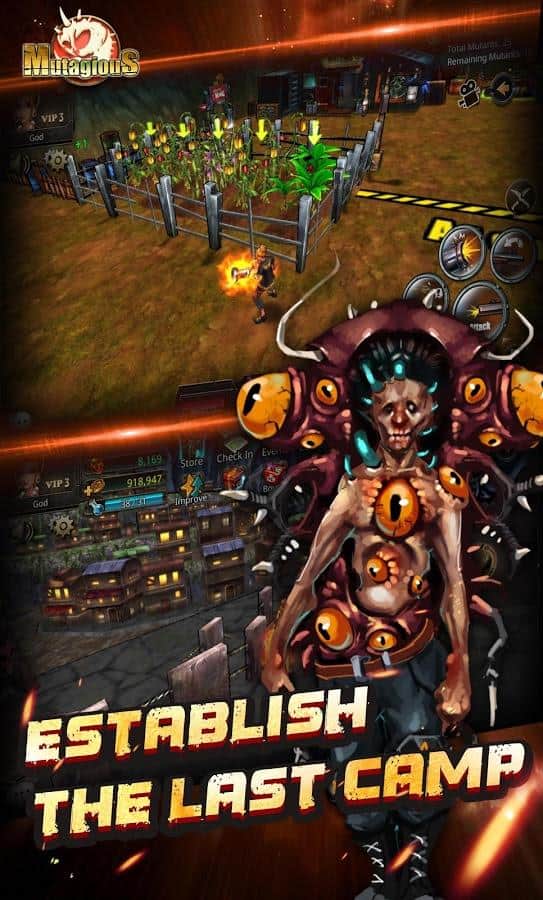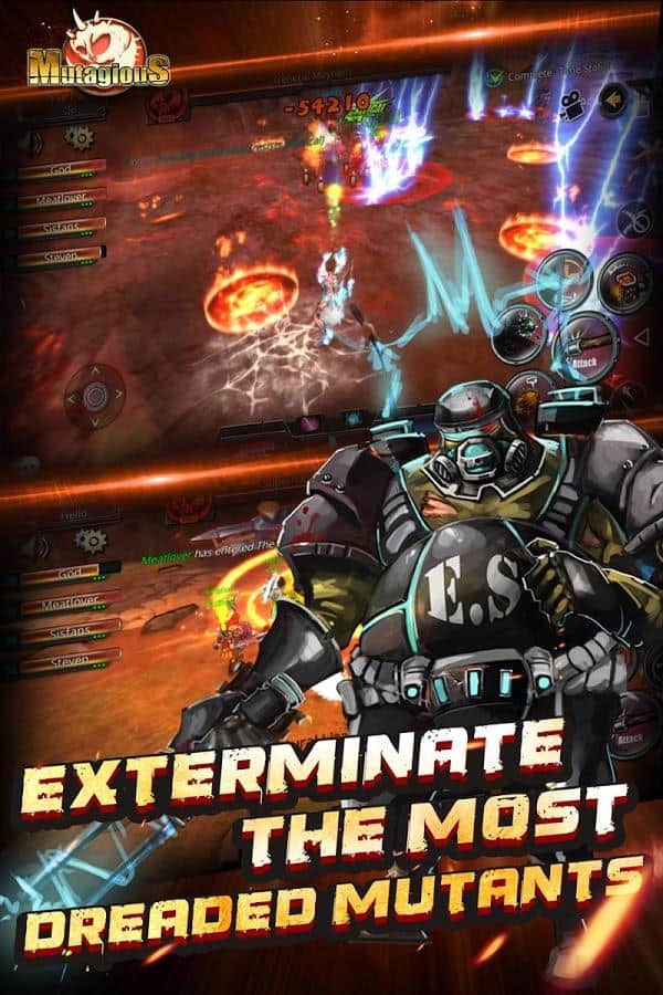Mutagious – RPG на андроїд, де ви потрапите в постапокаліптичний світ і будете захищати людський рід від жахливих монстрів. Світ захоплений монстрами і мутантами і вашим завданням у цій грі буде захистити залишилися в живих людей, що мешкають в печерах від знищення. Вибирайте собі героя з представлених в грі, кожен з яких володіє унікальними здібностями і має свій клас. Переміщайтеся по похмурих підземеллях і пустелях де живуть монстри і знищуйте їх, збираючи після бою відмінну видобуток. По ходу гри не забувайте покращувати свого героя, додаючи йому нових умінь, зброю і одягаючи його в різні костюми. Об'єднуйте свої сили з друзями і вступайте в нерівний бій з монстрами.