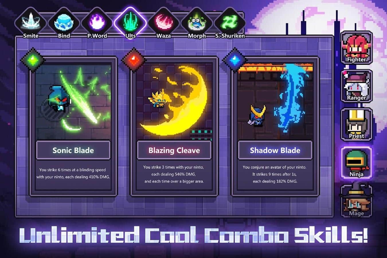 My Heroes – Dungeon Adventure - піксельна екшен - ролевка в якій вам належить, для початку вибрати одного з доступних героїв, яких в грі представлено п'ять класів. При цьому кожен клас наділений 20 різними здібностями, а у вашому розпорядженні буде більше сотні одиниць озброєння. Значні локації і орди ворогів зажадають від вас вдумливого підходу до тактики, при цьому швидкоплинний геймплей зажадає динаміки і швидкої оцінки ситуації.