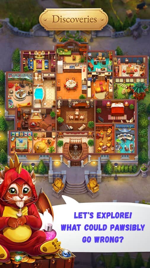 Mystery Manor: hidden objects - пригодницька гра, головним героєм якої став кмітливий котик на прізвисько Джошуа. Наш герой залишився одні, так як його господар вирушив у подорож, а згідно з сюжетом особняк в якому проживає волохатий буквально кишить загадками, привидами та іншими містичними явищами, але рудий персонаж цілком дотягує до класу детектива і вам необхідно допомогти йому в розгадці таємниць. Ігрова механіка в свою чергу поєднує в собі елементи три в ряд і квестової гри з серії пошук предметів.