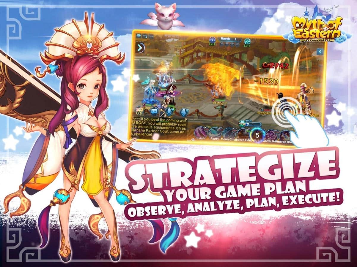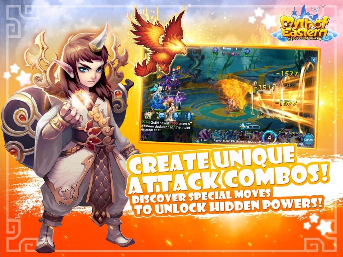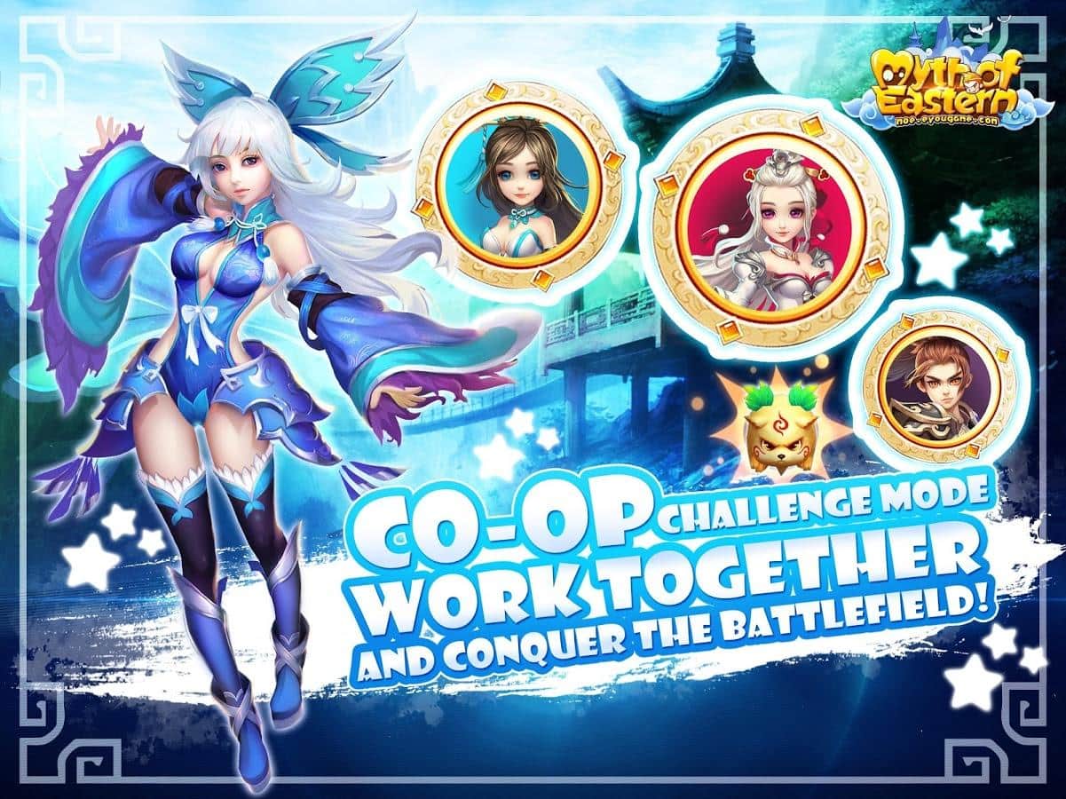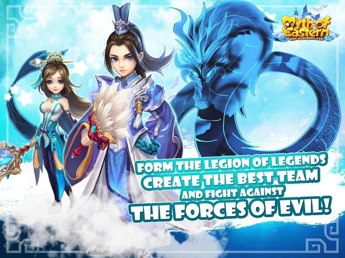 Myth of Eastern – RPG на андроїд, де ви візьмете під свій контроль команду героїв і проведете їх за містичним земель стародавнього сходу. Дослідіть всі прилеглі території і бийтеся з жахливими монстрами і сильними ворогами. Зберіть свою непереможну команду, яка буде складатися з різних героїв, які володіють унікальними вміннями і зброєю. Перед кожним боїв ретельно продумуйте кожен свій крок, враховуючи особливості своїх воїнів, щоб застосовувати їх всі і наносити руйнівні комбо удари. Після вдалої битви купуйте для воїнів нову зброю і броню, а також забезпечуйте їх бойовими вихованцями і наделяйте крилами. Об'єднуйте свої сили з друзями і разом нападайте на сильних босів.