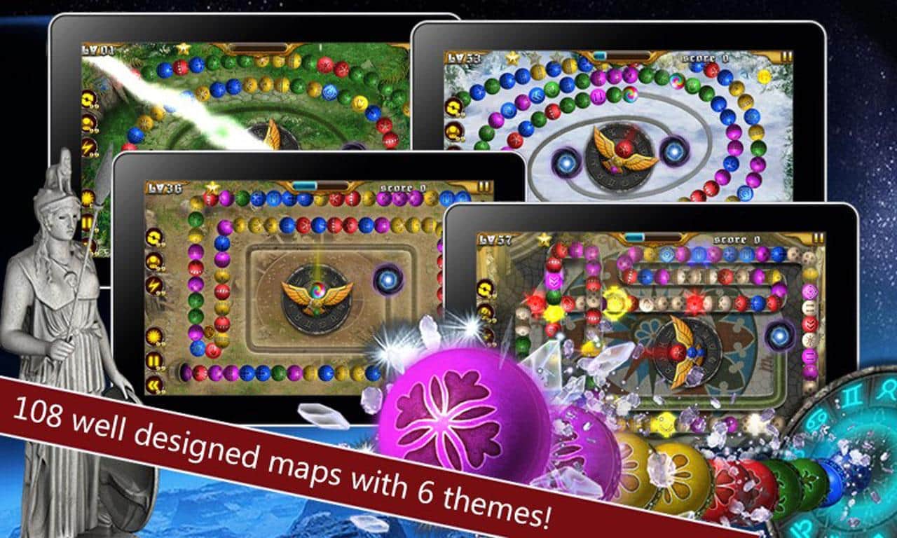 Myth Zuma - Zodiac Saga Online - та же самая игра что и в компьютере теперь и на аndroid. Игра в стиле Zuma, но на тему мифов северных народов. Выбиваем шары пушкой, до того момента пока они не достигнут конца пути. При этом необходимо убирать цепочки комбо, потому что с помощью них вы получаете больше очков.
