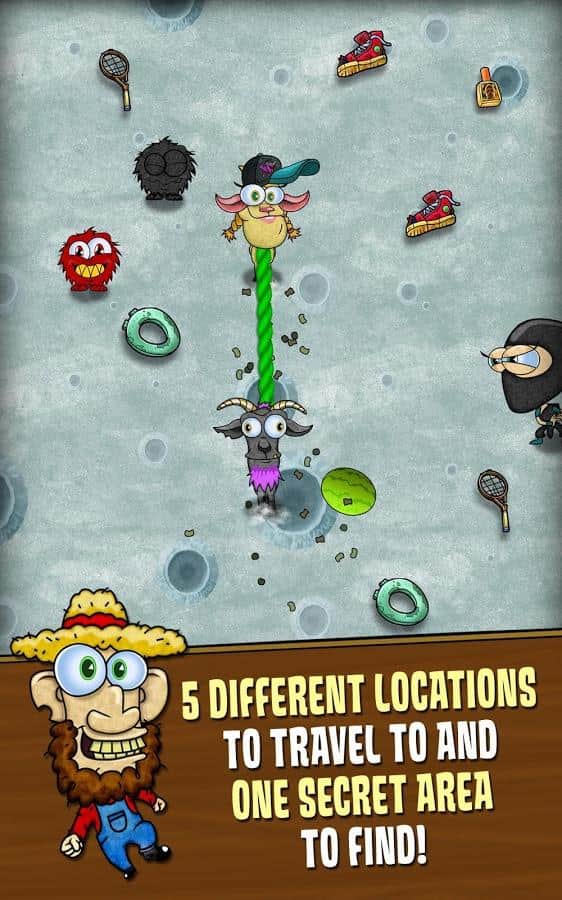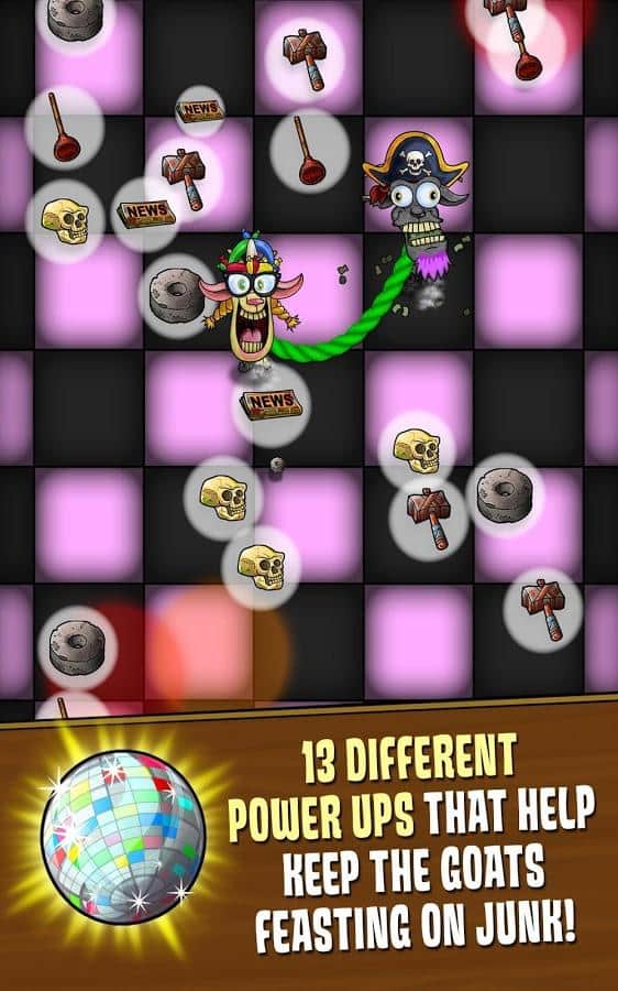 Напевно важко буде знайти власника мобільного пристрою, який би не був знайомий зі студією розробником Nickelodeon, адже в їх арсеналі такі хіти як TMNT: ROOFTOP RUN, Oscura, і звичайно ж серія про Губку Боба. Nasty Goats - нове творіння Nickelodeon, на цей раз хлопці вирішили звернути свою увагу на жанр ранеров, але у властивій собі манері дуже оригінально підійшли до створення гри. Головними героями Nasty Goats, що перекладається як брудні ратиці, стала пара геть відморожених козлов, якимось чином заплуталися в мотузці і тепер невідривно наступні один за одним. Втікши з ферми наші персонажі вирішили зайнятися потрібною справою, очищенням планети від сміття. Але фермер не бажає втрачати живність і відправляється в погоню. Ваше завдання, управляючи відразу двома героями зібрати якомога більше сміття, при цьому уникаючи перешкод, ворогів ще й тікаючи від фермера.