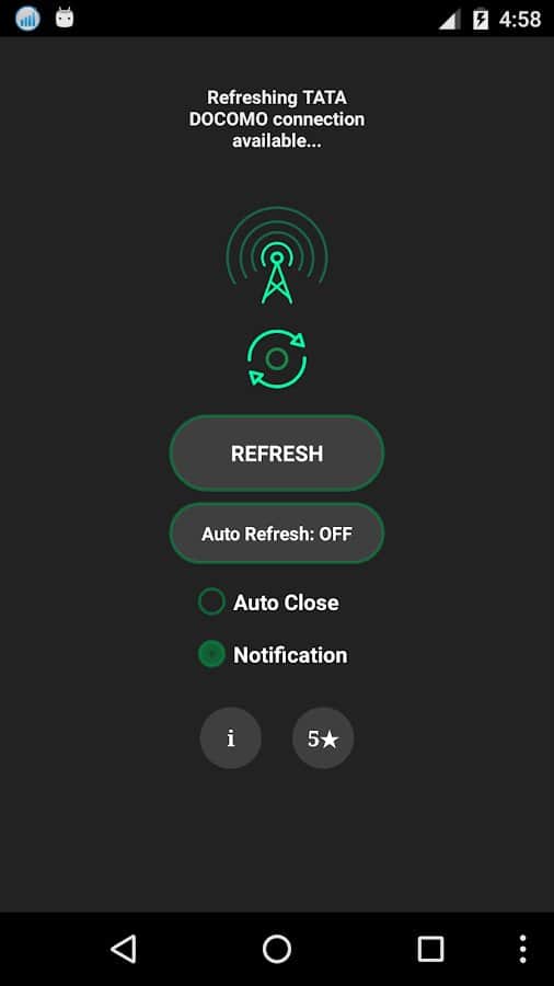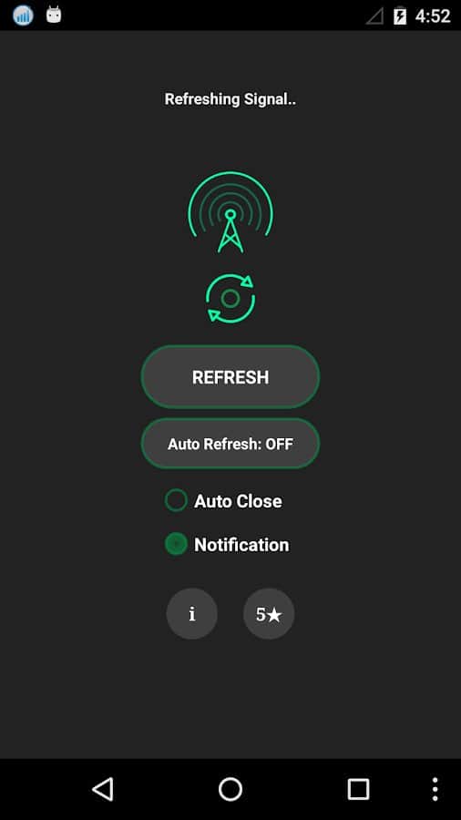 Network Signal Refresher - чи Бувало у вас таке, що ви розмовляли по телефону і раптом несподівано пропадала зв'язок? Ця проблема бувала в багатьох, особливо якщо вони жителі щільно заселеного міста, де зв'язок за часту тільки засмучує. Цей додаток не зможе збільшити сигнал мережі, це по суті неможливо, однак воно буде перезавантажувати вашу мережу, що б зловити найкращий сигнал, це і забезпечить вам гарний якість зв'язку, і стабільність при розмові.