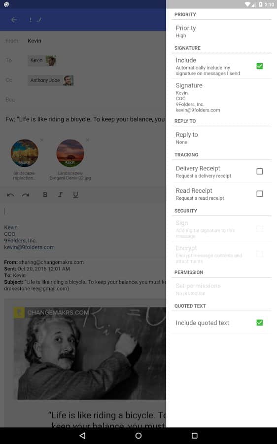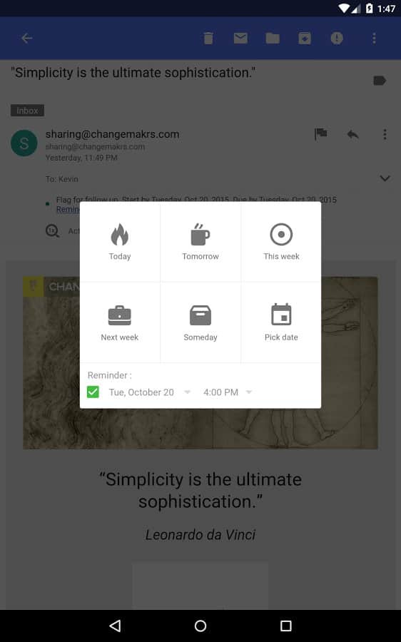 Nine - Outlook for Android - Хочете завести для себе нову і зручну пошту? Ваші повідомлення будуть у безпеці разом з новою поштою Nine. Вона була розроблена з метою максимальної зручності для користувачів, і містить в собі все найкраще. Ви зможете планувати свій день прямо в поштовій скриньці, розподілять і фільтрувати листи, а так само посилати швидкі відповіді на два і більше адрес.