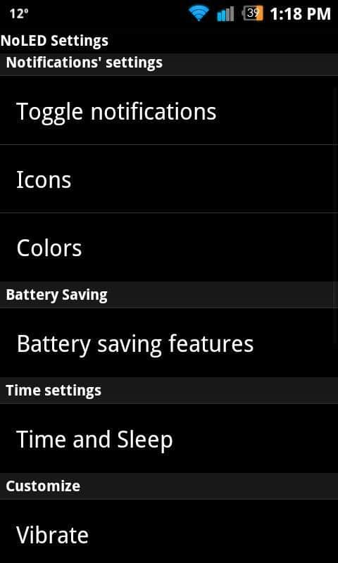 NoLED - программа для android смартфонов Samsung Galaxy S, возможно и других смартфонов с AMOLED дисплеями в которых нет светового индикатора, для информирования о пропущенных вызовах, смс и других уведомлений. Благодаря этой программе, вы сможете настроить отображение нужных вам пропущенных уведомлений, в виде цветных иконок перемещающихся по чёрному экрану. Батареи использует не много в вязи с тем, что программа основана на свойствах AMOLED дисплеев: тратят энергию только на светящиеся пиксели.