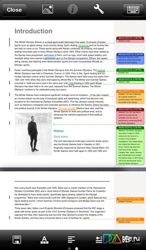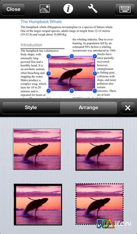 - Підтримка плаваючих і внутристрочных зображень (вкладення з фотоплівки або вставка з інших програм)