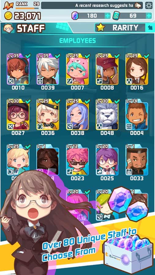 Понад 80 унікальних працівників на вибір, 10 різних типів співробітників і 6 з унікальними здібностями