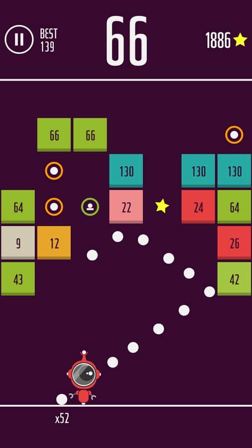 One More Brick – захоплююча аркада для андроїд, де ви будете з допомогою кульок руйнувати блоки. Проведіть весело свій вільний час граючи в цю гру і набираючи очки. Прицеливайтесь і робіть постріл кульками руйнуючи всі блоки знаходяться у верхній частині екрана. Враховуйте реалістичну фізику куль, які будуть ударятися про об'єкти і відскакувати в різні сторони. Руйнуйте блоки, які мають певне число, саме стільки раз ви повинні вдарити по них. Відкривайте для себе нові кульки, які будуть володіти спеціальними навичками і налаштовуйте їх в редакторі. Наберіть достатню кількість очок і піднятися на самий верх таблиці лідерів.