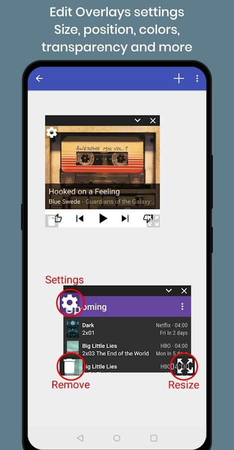 Overlays – удобная программа для пользователей андроид устройств от разработчика APPLAY, с приятной возможностью размещения виджетов домашнего экрана в плавающих окнах, что позволяет легко переключаться между ними в любое время. Есть интеграция с Tasker. Приятного пользования и отличного настроения.