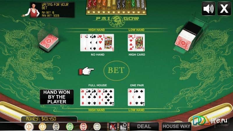 Покер - одна з найстаріших і найпопулярніших карткових ігор, як наслідок-за час свого існування покер обзавівся величезною кількістю різних варіантів і на сьогоднішній день вже просто не порахувати всі можливі способи гри в покер. Так, однією з варіацій класичного покеру є Pai Gow Poker, в цілому це все та ж карткова гра, однак ігровий процес ведеться з використанням семи карт у гравця, якому необхідно з використанням формату 5 плюс 2 зібрати комбінацію яка сильніше ніж у супротивника. Особливістю Pai Gow Poker є те, що в основу лягла класична китайська гра яка ведеться за коштами китайського доміно. Даний варіант покеру запатентований його автором і вкрай популярний в казино всього світу.