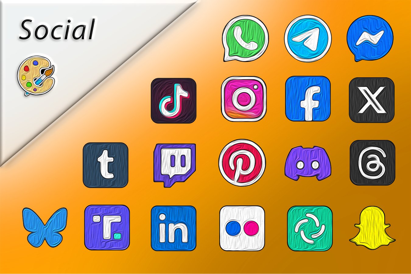 Painting - Icon Pack перетворює ваш смартфон на витвір мистецтва! Понад 4750 унікальних іконок у стилі олійного живопису, 30 HD-обоїв 2K та детально опрацьований дизайн кожної деталі подарують вам неповторний стиль. Підтримка динамічного календаря, регулярні оновлення, система запиту відсутніх іконок і сумісність з топовими лаунчерами роблять пакет must-have для персоналізації. Створіть яскравий вигляд пристрою та насолоджуйтеся візуальним досконалістю кожного дня — завантажте та відчуйте різницю!