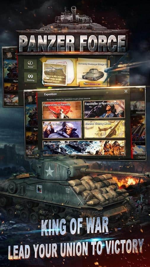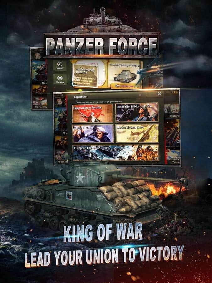 Panzer Force: Battle of fury – візьміть під своє командування танковий батальйон і візьміть участь в епічних танкових баталіях на різних картах. Станьте досвідченим полководцем і розробляйте свою тактику ведення бою, переміщаючи танки по полю, беручи участь в масштабних битвах. Нападайте на бази супротивників, захоплюючи нові території і корисні ресурси. Відкривайте для себе нові карти і типи танків і покращуйте їх у своєму ангарі. Набирайтеся досвіду і кидайте виклик, найсильнішим гравцям беручи участь з ними в битвах і перемагаючи їх. Ведіть безперервний бій з ворогами і наймайте на службу досвідчених генералів і командирів.