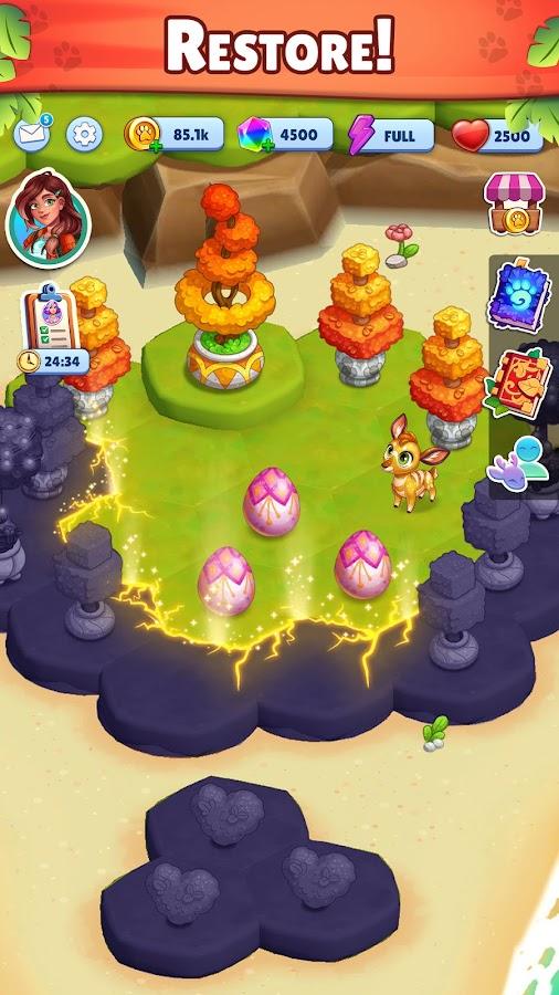 Paradise Paws: Merge Animals запрошує вас відновити зруйнований притулок для тварин, рятувати зникаючі види та об'єднувати предмети, щоб повернути острову колишнє процвітання. Відкривайте таємниці заповідника, доглядайте за милими істотами, розвивайте їх та захищайтеся від жадібних забудовників, які прагнуть захопити територію. Лише ви та ваша подруга Ліззі можете побудувати затишний дім для тварин і врятувати це особливе місце.