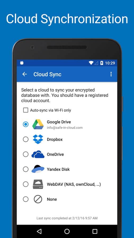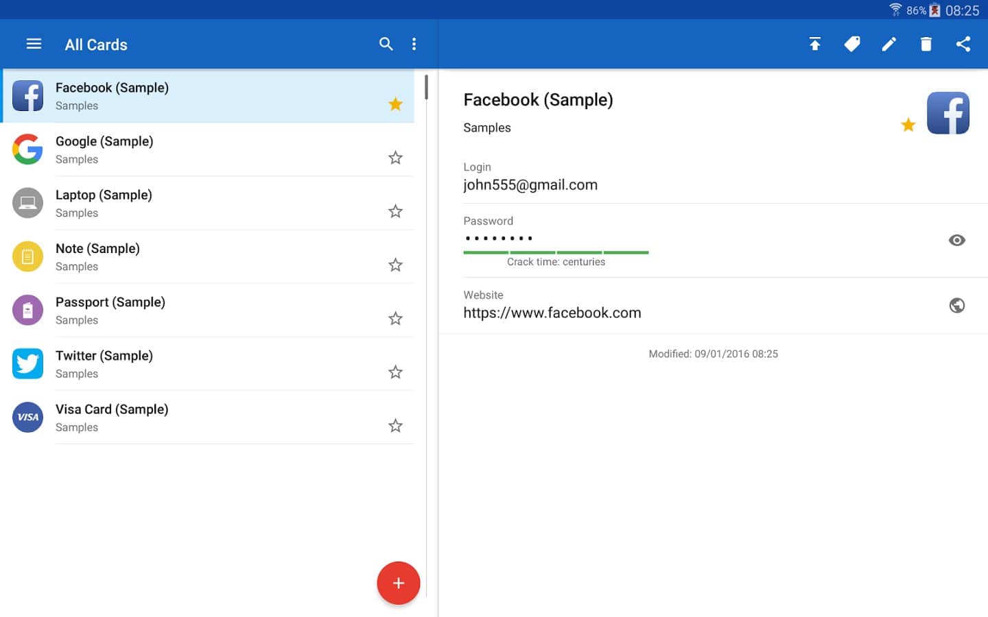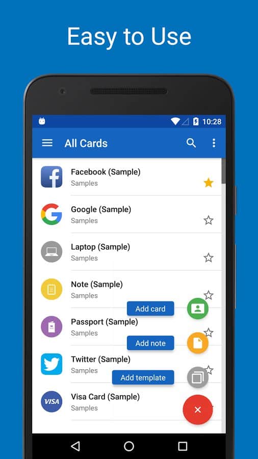 Password Manager SafeInCloud - Зручний, універсальний менеджер паролів для вашого смартфона. З його допомогою ви зможете підсилити захист свого пристрою, ні для кого не секрет що більшість додатків зберігають паролі з метою спростити вам життя. Так ось цей додаток захистить всі ваші паролі, зберігаючи їх в окрему базу даних. Це в рази зменшує шанси зловмисників на отримання доступу до ваших персональних даних. Навіть якщо ви втратили свій смартфон, ніхто не зможе отримати доступ до вашої інформації, а ви ж у свою чергу за допомогою синхронізації зможете перекинути всі важливі дані на копм'ютер.