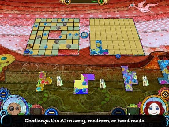 Patchwork The Game – цікава головоломка для IOS, з захоплюючим геймплеєм. У цій грі вашою головною задачею буде заповнювати ковдру клаптиками за формою тетрису. У цю гру можуть грати одночасно два гравцям, які повинні заповнювати ковдру клаптиками, хто швидше виконати місію той і переміг. Також в цю гру ви зможете грати проти комп'ютера або гравця зі всього світу. Заповнюйте свою ковдру різнокольоровими клаптиками різної форми і проходьте один за іншим рівні, складність яких буде поступово збільшуватися. Гра порадує гравців різноманітним оформленням, режимом навчання і складними рівнями.