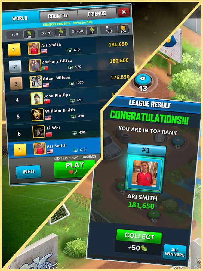 Pelé: Soccer Legend – спортивна гра на андроїд, де ви будете грати за знаменитого футболіста Пеле. Почніть свій кар'єрний ріст у дворах Бразилії і досягнете вищої ліги, стаючи самим відомим футболістом світу. Візьміть під свій контроль футболіста і майстерно забивайте голи у ворота супротивника, набираючи очки і піднімаючись все вище в таблиці лідерів. Всього в цій грі представлено 150 неповторних рівня, складність яких буде поступово збільшуватися. Виконаєте всі місії гри і завершити складний перехід у вищу лігу. У грі представлений режим багатокористувацької де ви зможете конкурувати з гравцями зі всього світу. Забивайте штрафні та отримуйте призи.