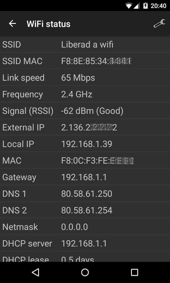 Ви зможете перевірити статус вашої локальної мережі: локальні і зовнішні IP шлюз, DHCP-сервер