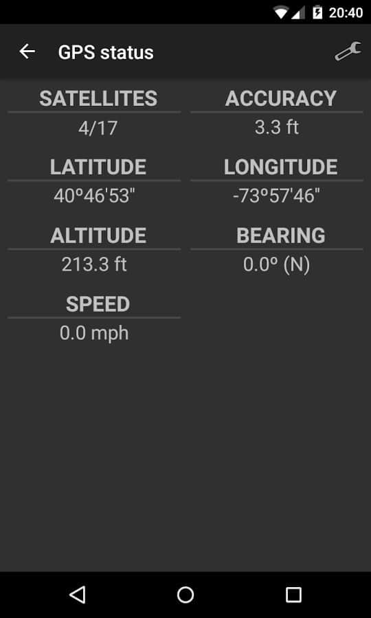 Ви побачите реальні дані, надані GPS: супутники, широта, довгота, висота над рівнем моря, швидкість