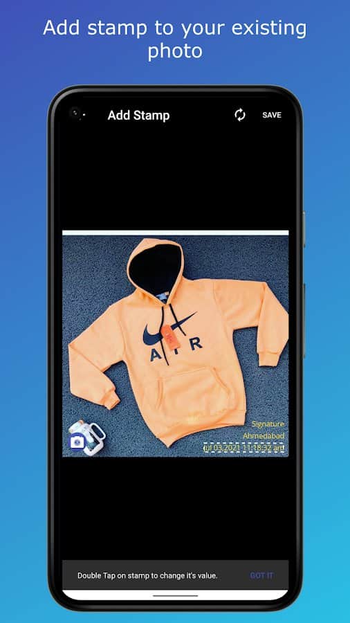 & lt;p & gt; PhotoStamp Camera - зробіть важливі позначки на ваших фотографіях, будь це вибране місце розташування, час зйомки або особлива напис. Додайте на зображення текстове повідомлення, попередньо вибравши шрифт (накреслень в колекції більше 800), колір, розмір та інше. Перетягніть положення штампа в зручне для вас місце, виберіть прозорість відображення на екрані, додайте власний логотип як додаткову деталь і вивчіть інші функції, щоб скористатися ними в процесі розробки. Експериментуйте і пробуйте нове!