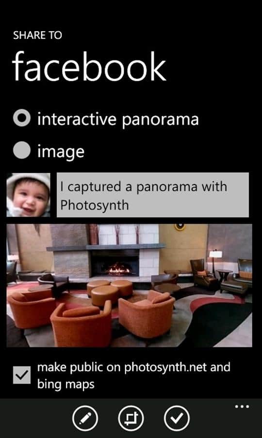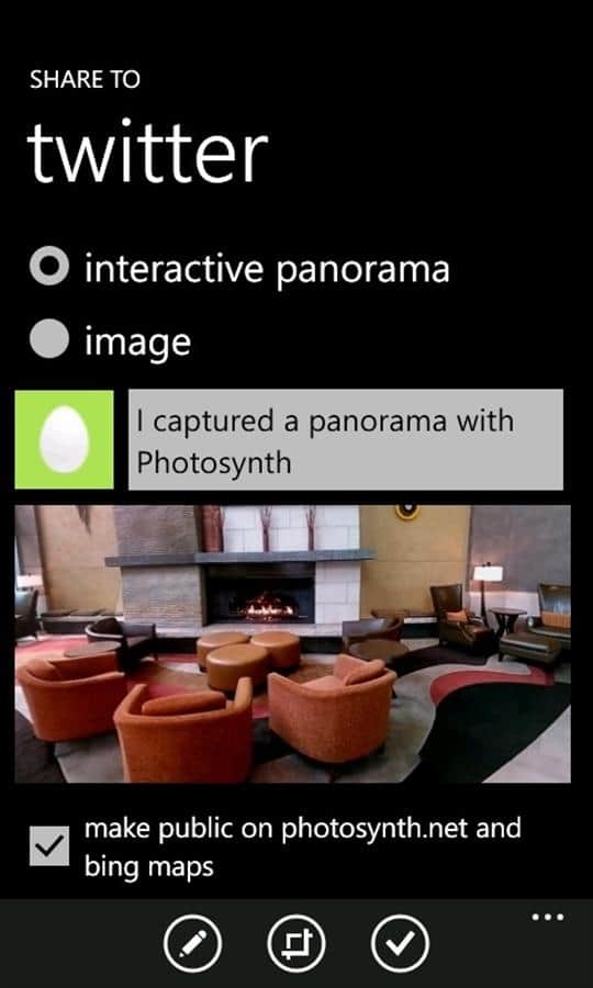 Photosynth - отличное приложение для Windows Phone, которое поможет вам с легкостью, сделать красивые панорамы. Это единственное приложение для windows phone, которое позволяет делать панорамные снимки на 360 градусов по горизонтали и вертикали. После того как вы сделали потрясающий снимок вы можете поделиться им в Facebook и Twitter, а также вы можете публиковать свои фото в bing.