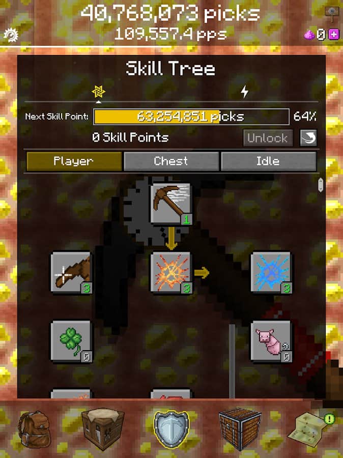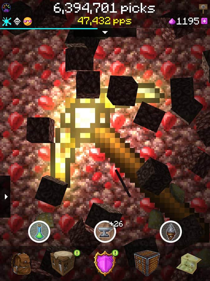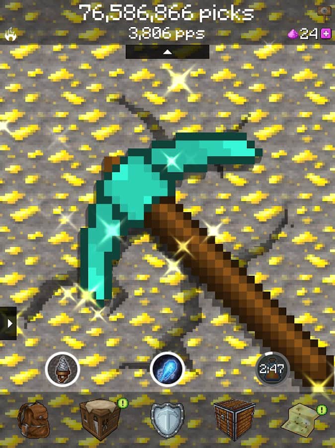PickCrafter - Idle Craft Game – инкрементная гра-клікер на андроїд, де ви будете з допомогою кирки копати биомы. Просто торкніться екрана свого телефону або планшета в потрібний момент і починайте копати. Покращуйте і відкривайте для себе нові кирки по ходу гри і зберіть всі блоки і спорядження. Капати і добувати золото, ніколи не було таким захоплюючим і захоплюючим заняттям. Прокачуйте свої артефакти і здібності, що дозволить вам копати глибше і швидше. Заробляйте ресурси і отримуйте щоденні нагороди і бонуси.