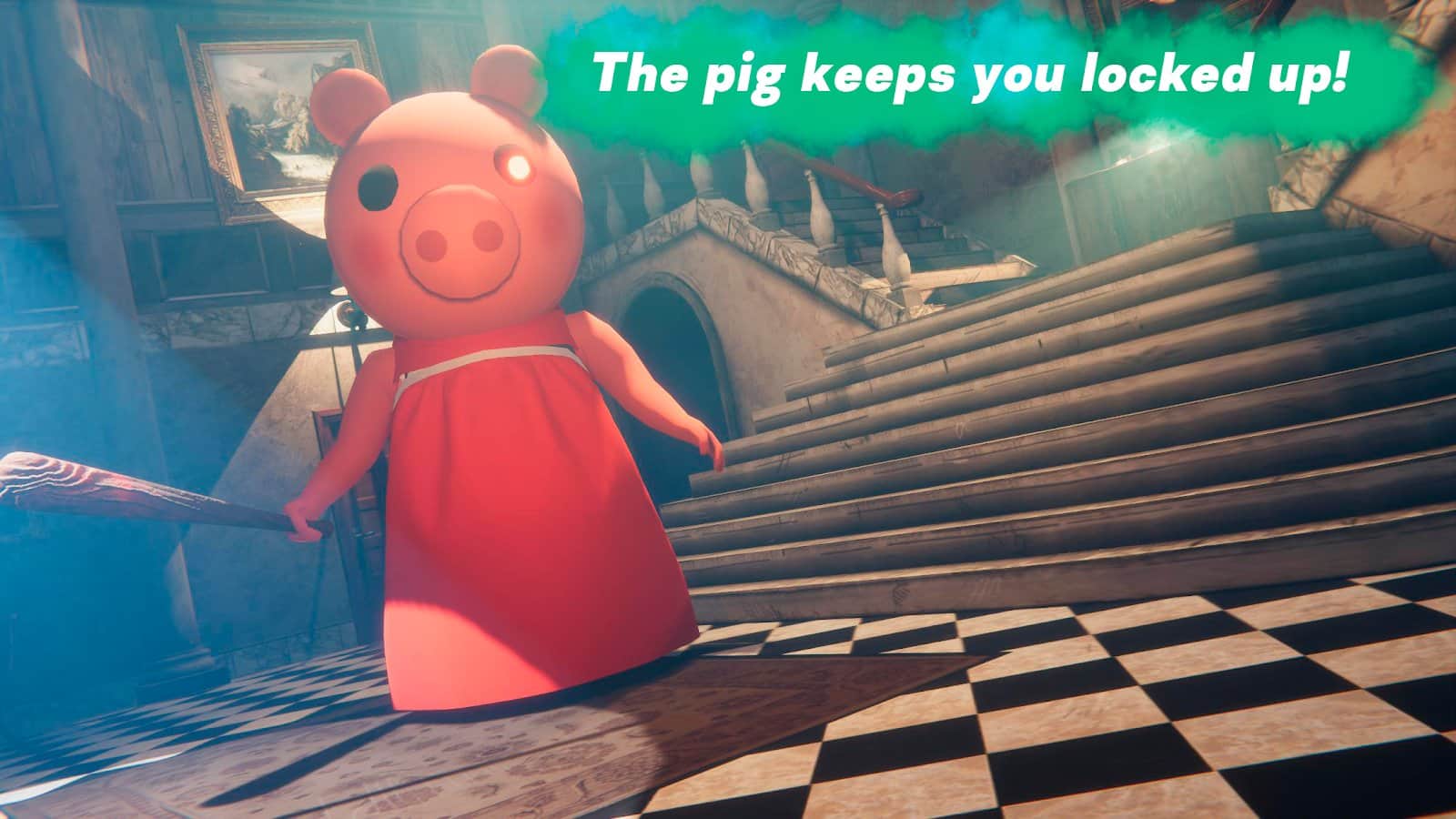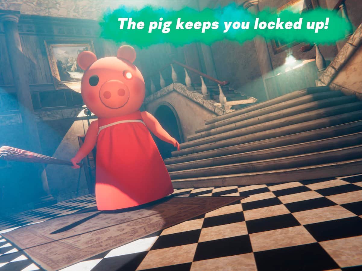 PIGGY - Escape from pig horror – це хорор бродилка з елементами головоломки.Злісна свинка утримує вас під замком величезного будинку. Щоб втекти з цього страшного місця і залишитися в живих, потрібно напружити всю свою логіку і діяти швидко. Вивчайте будинок в пошуках підказок і ключів від дверей. Відкривайте потаємні кімнати і вирішуйте складні головоломки. Ховайтеся під столом, ліжком і в шафі – робіть все, щоб не попастися свинці на очі. Якщо вона вас знайде, ви будете вбиті. Гра має дуже забавний сеттінг, але від цього не стає менш страшною і жахливою, швидше навпаки. Запустіть зараз і спробуйте втекти.