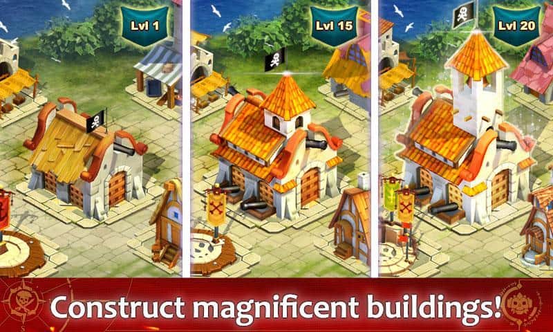 Pirate Sails: Tempest War – виступайте в ролі пірата в цій стратегії на андроїд, і борозните безкраї моря і океани. Зберіть свою унікальну команду, що складається з бойових і відважних піратів. Вашої головним завданням у цій грі буде нападати на продовольчі суду, топити їх і забирати собі скарби. Не зупиняйтеся на досягнутому і скоряйте нові моря і землі. Дослідіть далекі острови і будуйте на них різні будівлі і споруди. Поповнюйте свою команду новими піратами, які будуть володіти унікальними можливостями і навичками. Кидайте виклик іншим піратам і перемагайте в нелегкій битві.