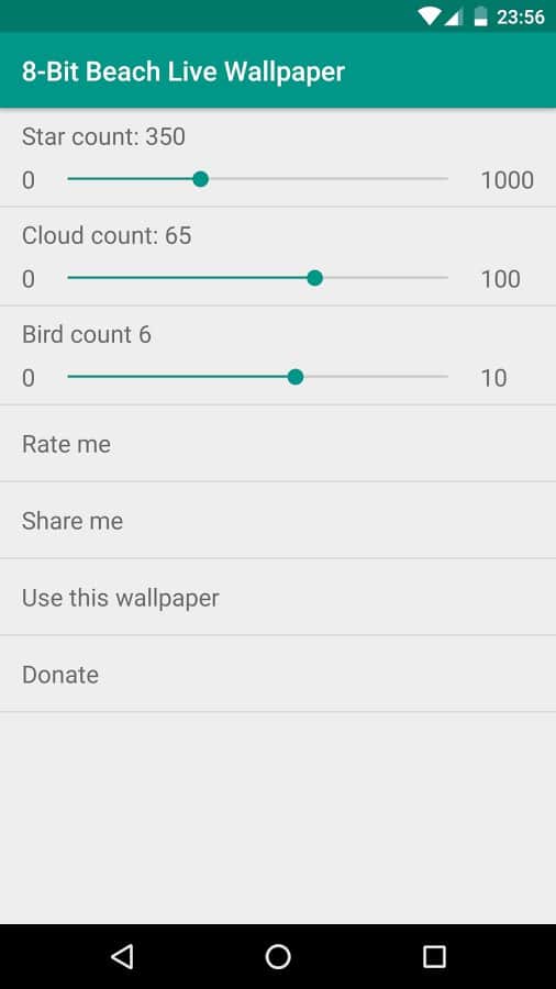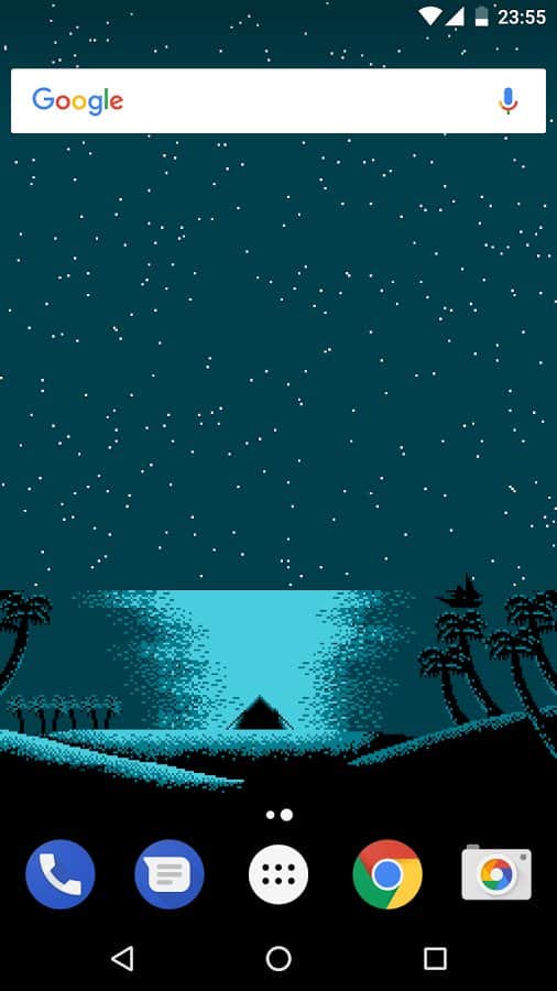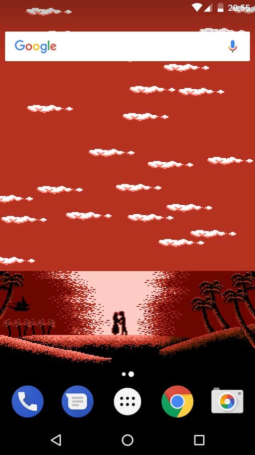Pixel Beach Live Wallpaper – живі шпалери на андроїд, з графікою в стилі заставок Dendy. Ці шпалери будуть відображати на вашому екрані телефонів або планшетів різні картинки, які буде залежати від часу доби. На картинках зображений тропічний острів з парою закоханих, які проводять тут свій медовий місяць. Спостерігайте за всім, що відбувається на екрані і з допомогою налаштувань додавайте хмари, зірки і птахів. Ці шпалери не займуть у вас багато місця в пам'яті і порадують вас повною відсутністю реклами. Всього в цих шпалерах представлено 14 різноманітних сцен, які не дадуть вам нудьгувати.
