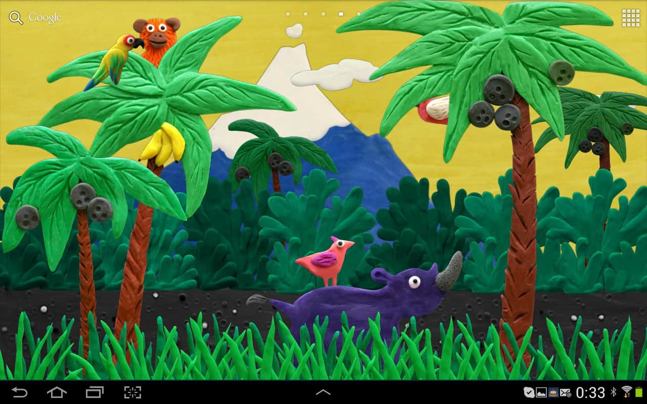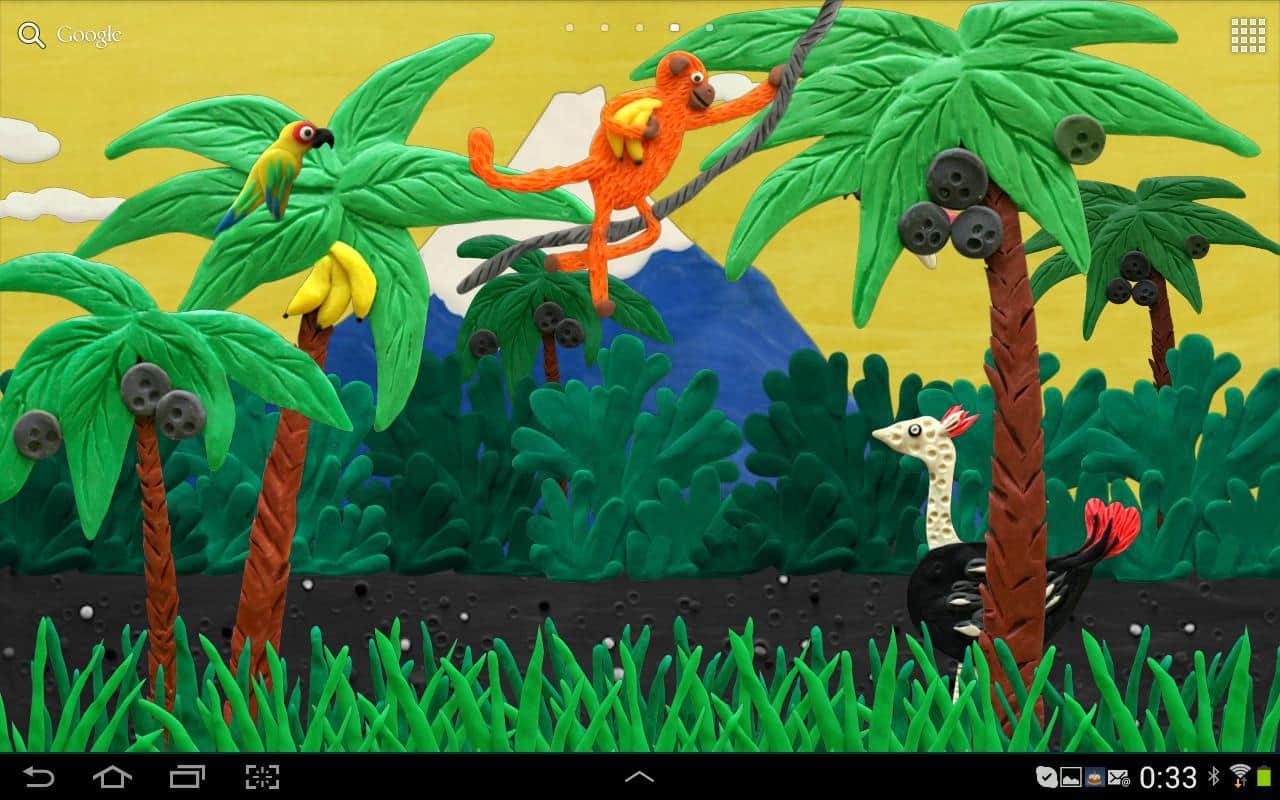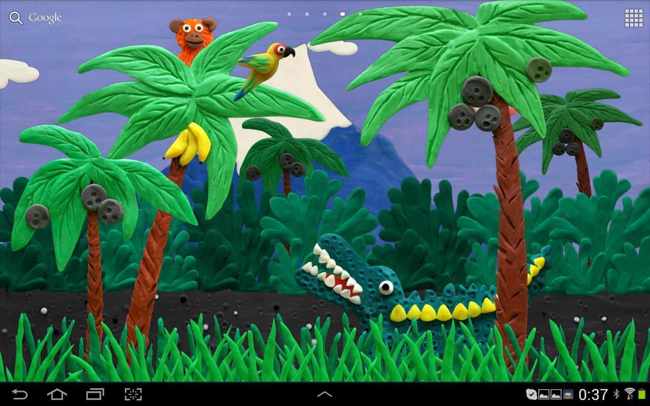 Plasticine jungle / Пластилиновые джунгли – еще одни яркие и потрясающие пластилиновые живые обои для андроид от разработчиков Kolesov & Mikhaylov. На этот раз разработчики порадуют нас таким диким уголком природы как джунгли, которые великолепно разместятся на экране вашего смартфона или планшта.