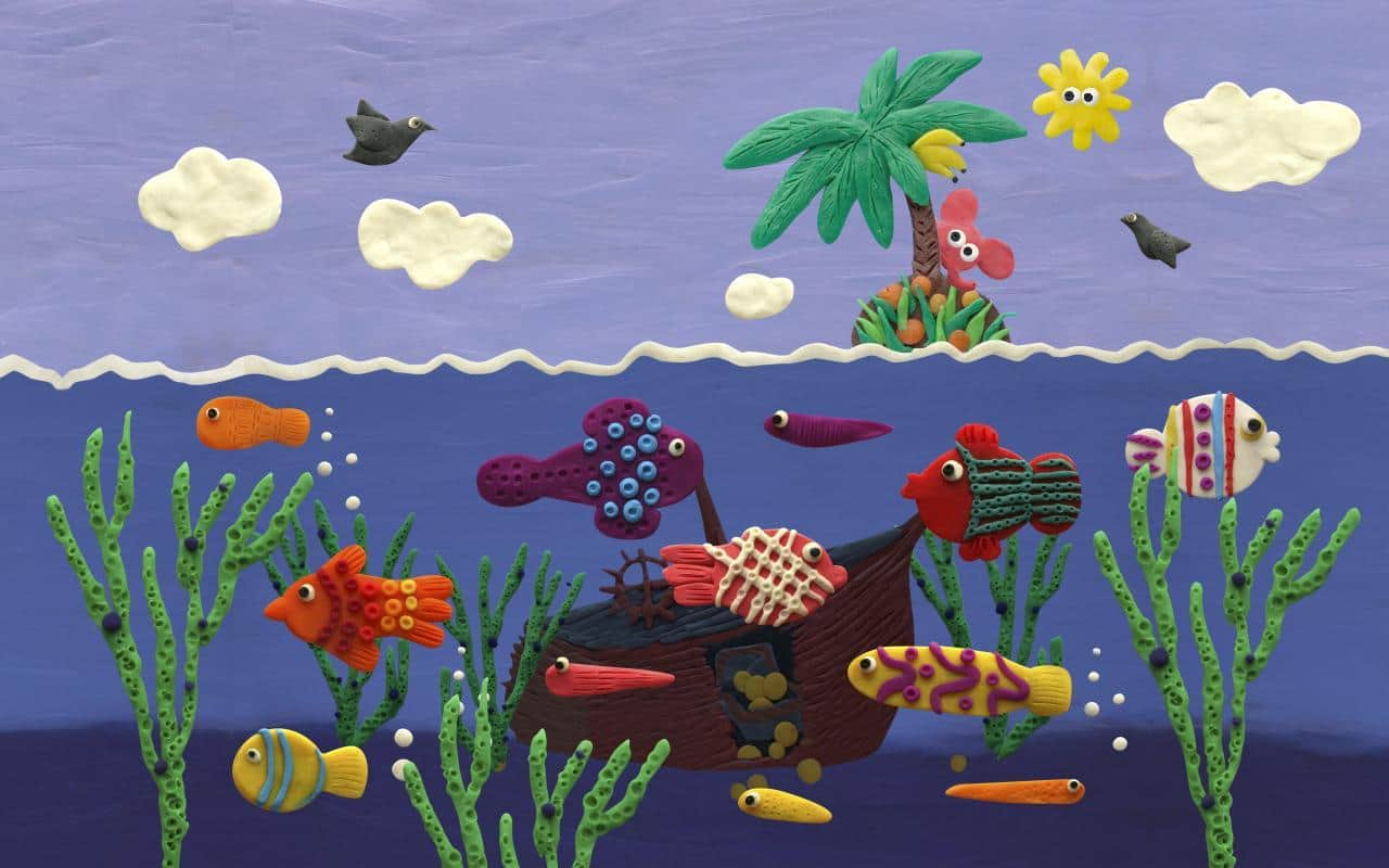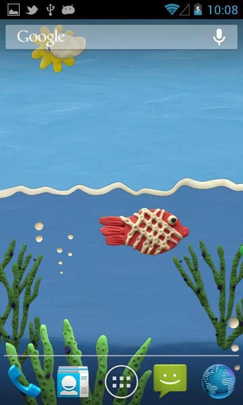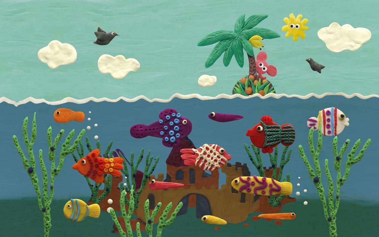 Plasticine ocean / Пластилиновый океан на живых обоях для андроид от разработчиков Kolesov & Mikhaylov. Кусочек детства и простота форм отраженные в обоях Plasticine ocean, принесут вам множество улыбок и тепла на весь день. Вас порадуют: несколько видов рыб, остров в середине океана, летающие птицы, слон на острове, а так же подводный корабль и замок.