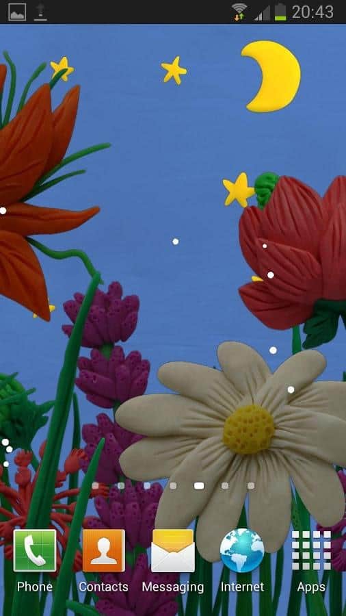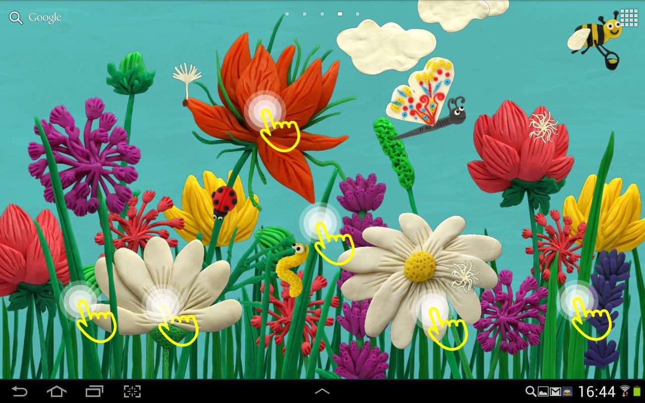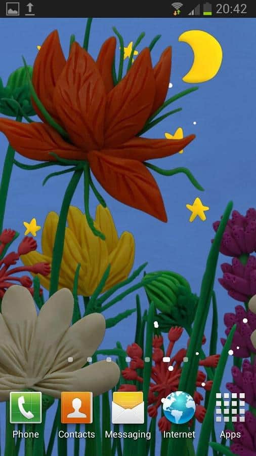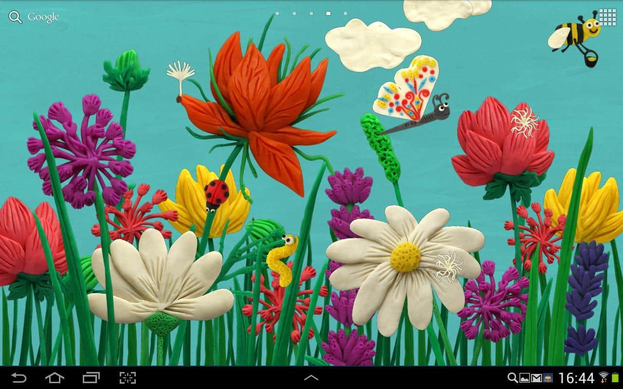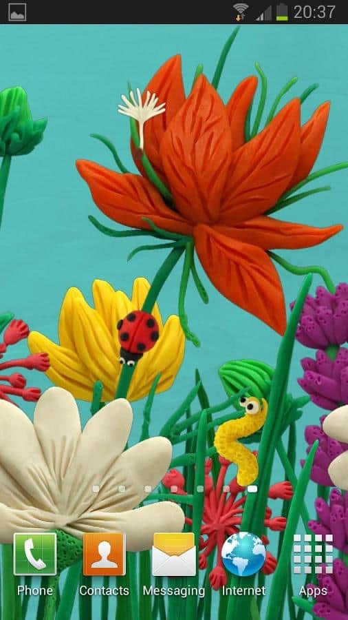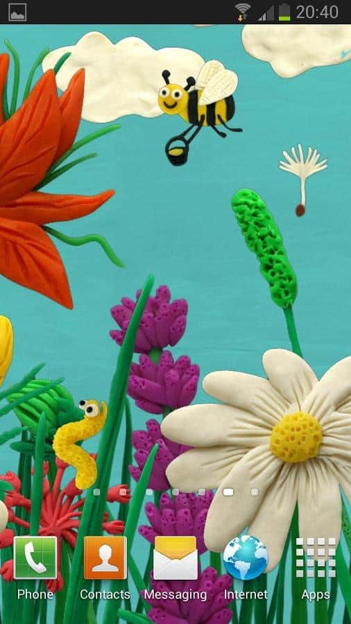 Plasticine Spring flowers – очень красивые весенние живые обои для андроид смартфонов/планшетов от разработчиков Kolesov & Mikhaylov с ярким пейзажем пластилиновых цветов. Потрясите цветы или траву, прикасаясь к ним. Обои содержат как дневной режим, так и ночной, последний содержит светящихся мотыльков, которые реагируют на ваше прикосновение в любом месте экрана.