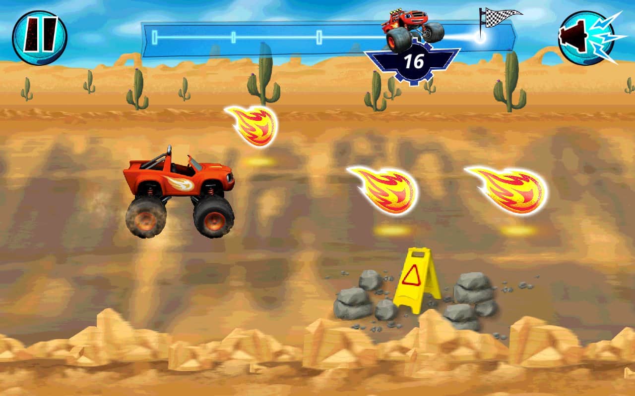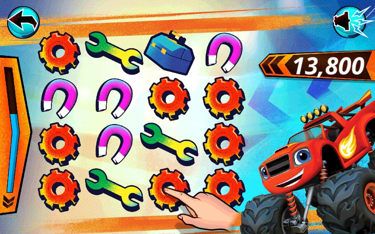 Playtime With Blaze – захоплююча гра для дітей де вони знову зустрінуться зі знаменитими героями такими як Спалах, Трощило, Огірочок, Риком і іншими. У цій грі ви будете їздити по Аксель-Сіті на найбільш швидкісних і потужних пікапах цієї гри. У грі представлена велика різноманітність міні-ігор, де ви будете мити пікапи, ганяти на них збираючи вогники і розфарбовувати їх на свій розсуд. Пройдіть всі випробування і отримаєте стікер, всього в грі представлено 12 стікерів. Всі стікери ви зможете витратити на створення свого власного світу.