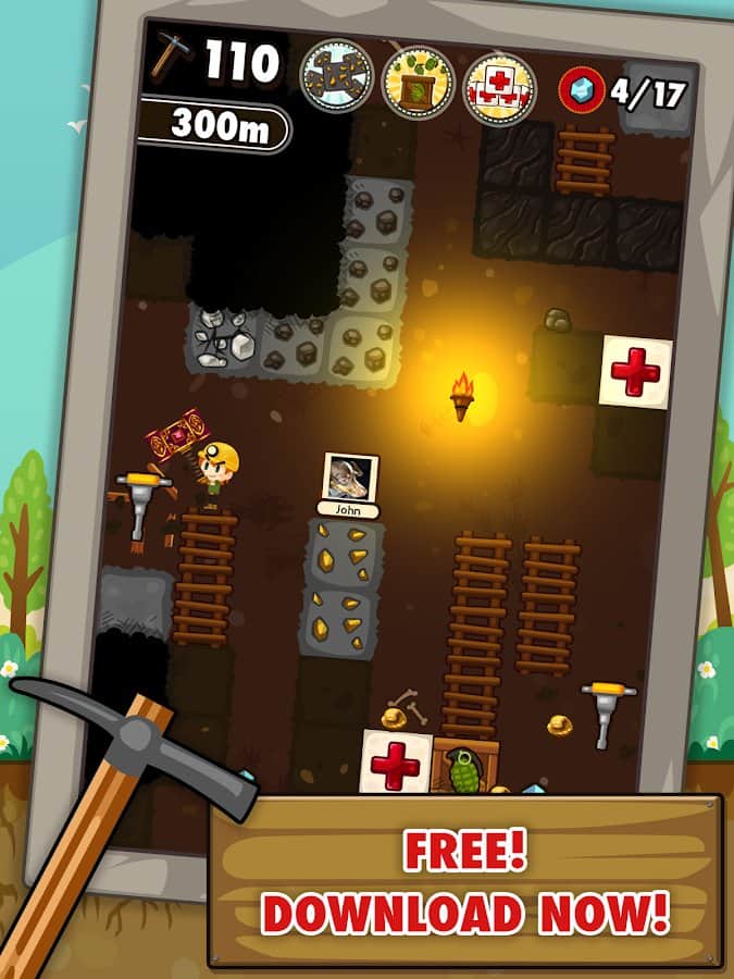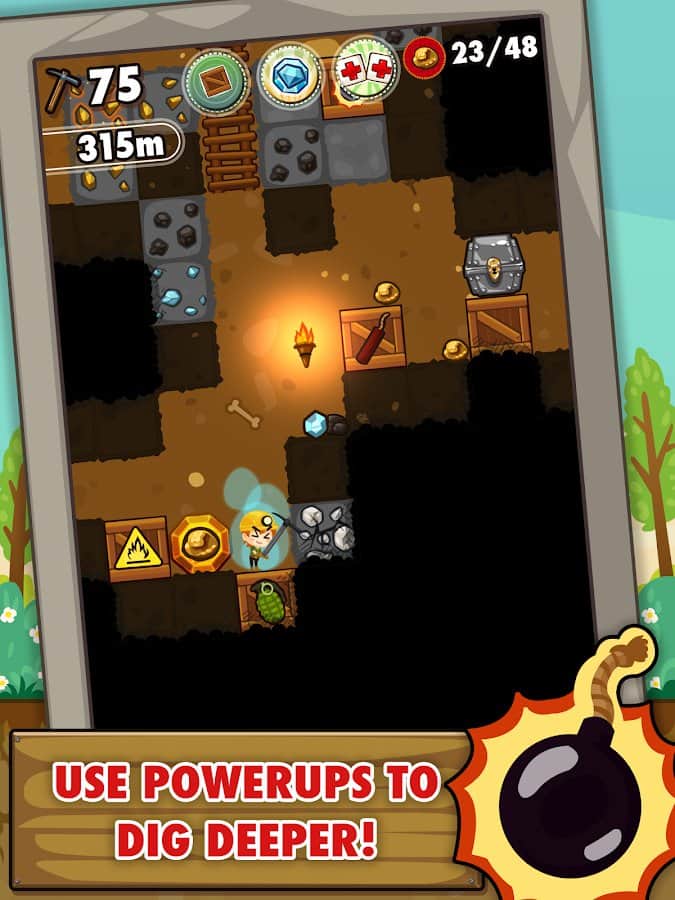 Pocket Mine – захоплююча гра на андроїд, де ви будете виступати в ролі копальника. Візьміть кирку і вирушайте в шахту, спускаючись все глибше добуваючи скрині з скарбами і рідкісні артефакти. Натискайте на екран свого телефону або планшета як можна частіше і досягнете максимального потенціалу копання з допомогою дожимних карт. Піднімайтеся всі вище в таблиці лідерів і змагайтеся з друзями. Застосовуйте для руйнування блоків бомби, динаміч, свердла та інші численні бонуси.