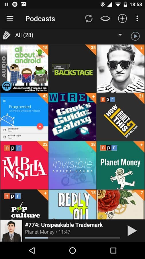Подкасты — удобный способ потреблять информацию, а когда они еще и удачно систематизированы — управляться с ними еще удобнее. Представленное приложение как раз и рассчитано на работу с аудио- и видеоподкастами. Для формирования коллекции можно воспользоваться встроенным поиском или добавить нужные источники вручную, кроме того, подкасты могут автоматическим импортироваться из указанных источников, а если нужно, то потом и автоматически удаляться. В приложении доступно как скачивание интересующих материалов, так и онлайн прослушивание при помощи встроенного плеера. А для большего комфорта прредусмотрены несколько виджетов на выбор, в том числе, на экран блокировки.