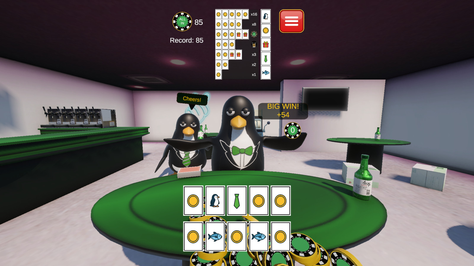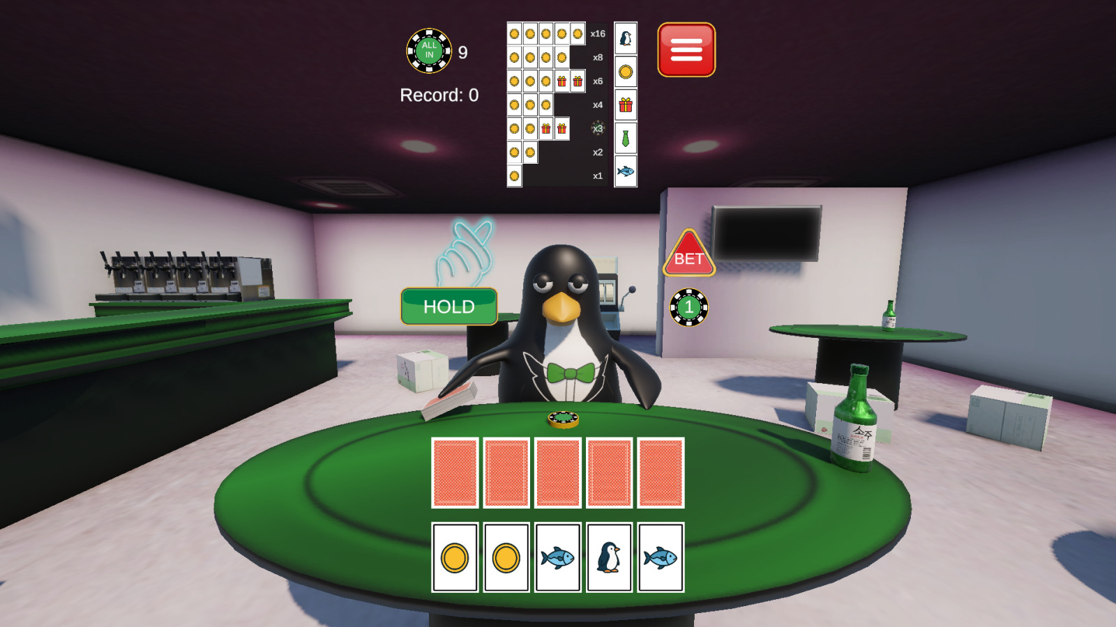 Poker Penguin - Ласкаво просимо в крижаний бар, де панує азарт і веселощі! У грі тебе чекає харизматичний пінгвін-дилер з непроникним виразом обличчя та гострим розумом. Чи зможеш ти обіграти його і не втратити все? Правила прості — зберіть комбінацію краще, ніж у суперника, і заберіть перемогу. Атмосфера бару, веселий персонажі та легкий гумор створюють ідеальний коктейль для відпочинку. Це не просто покер — це крижана битва розумів і удачі!