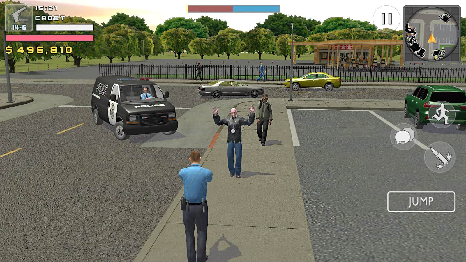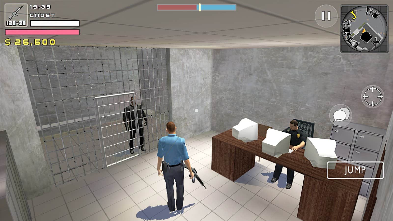 Police Cop Simulator. Gang War – симулятор на андроїд, де ви відчуєте себе справжнім поліцейським. У цій грі вам доведеться пройти шлях від кадета до капітана поліцейської дільниці. Ви тільки що випустилися з поліцейської академії і потрапили з розподілу в невелике місто. У місті споконвіку правили кілька банд, а місцевий шеф поліції зберігав між ними крихкий баланс. Проблеми у взаєминах накопичувалися і погрожували виллється у вигляді справжньої війни банд. Візьміть під свій контроль місто і патрулюйте його вулиці зупиняючи і заарештовуючи порушників і бандитів. Виконуйте рутинну роботу поліцейського, а також беріть участь в захоплюючих погоні і перестрілки.