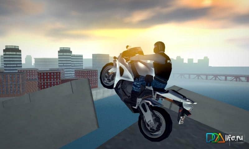 Police Motorcycle Crime Sim – гонки на андроїд, де ви візьмете під свій контроль поліцейський мотоцикл і будете виконувати різні трюки. Летите вперед на величезній швидкості по жвавих вулицях Нью-Йорка і перестрибуйте через численні перепони на шляху. Розганяйтеся до максимальних швидкостей і промчитеся на величезній швидкості по різних трасах, виконуючи трюки, перевороти і стрибки. Лавірує в потоці нескінченного транспорту і майстерно виконуйте трюки. Покажіть на ділі всі свої навички та вміння в управлінні мотоциклом і відточуйте свою майстерність в цій грі. Придбайте для свого героя нові мотоцикли, які будуть володіти унікальними характеристиками і зовнішнім виглядом.