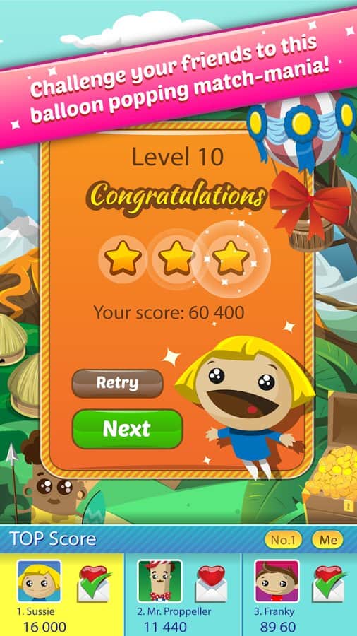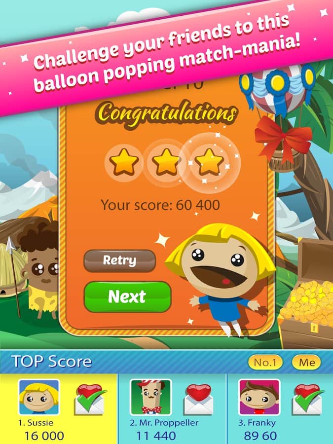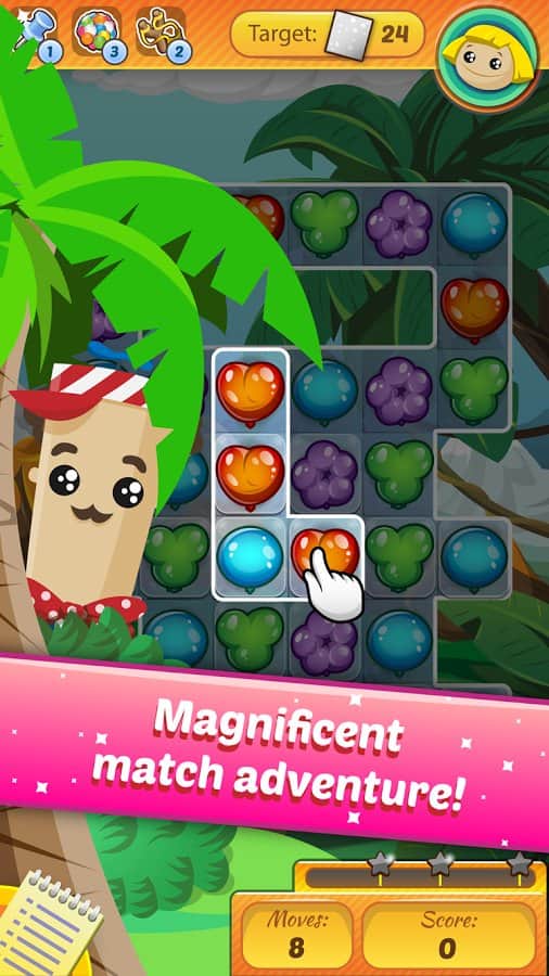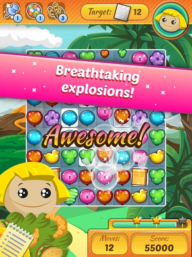 Pop Voyage – гра з жанру три в ряд на андроїд, де ви будете допомагати маленькій дівчинці подорожувати по фантастичного світу. У маленької Сьюзі день народження і її друг вирішив взяти її в захоплюючу подорож. Складайте по три і більше кульки в ряд і лопніть їх, отримуючи можливість рухатися далі і досліджувати світ. Прикладайте всі свої вміння і спритність, щоб пройти всі рівні цієї захоплюючої гри і доставити Сьюзі до місця призначення. Дослідіть всі локації цієї гри і знайомтеся з новими друзями і героями. Весело проведіть свій вільний час і насолоджуйтесь відмінною графікою і численними рівнями.