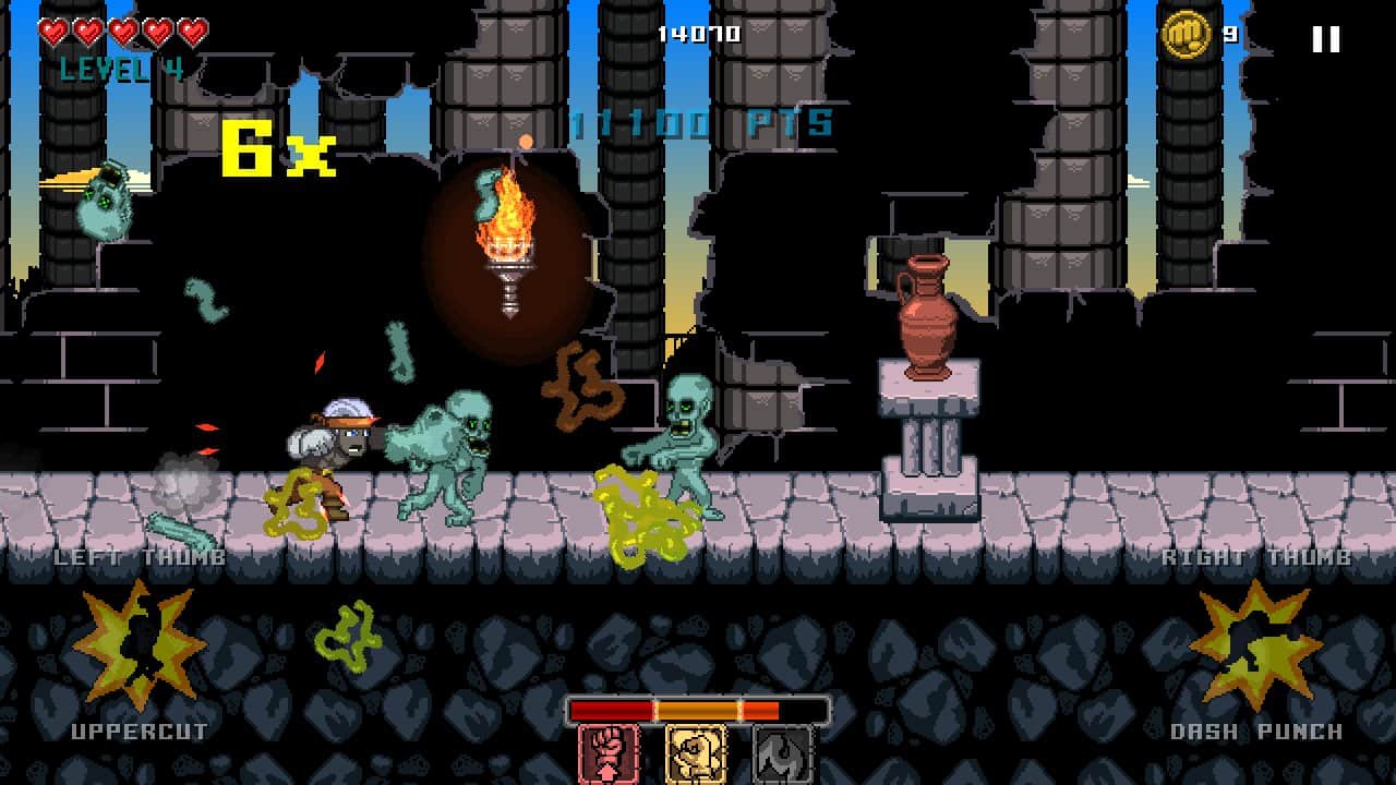 Punch Quest - это раннер для андроид с графикой 16-битной игры. Несмотря на простоту изображения, игра притягивает и имеет немало поклонников. Управление в игре простое и поэтому вам остается наслаждаться геймплеем по полной программе! Начинайте борьбу со злом - продвигайтесь вперед по зловещему подземелью и уничтожайте всех врагов на вашем пути с помощью ударов, комбо-ударов и специальных приемов, например швыряйте одним врагом в других! Кроме того, приятно порадует множество открываемого инвентаря, разные способности, кастомизация и многое другое! Выполняйте квесты и прокатитесь на необычном динозавре, который умеет стрелять лазером изо рта!