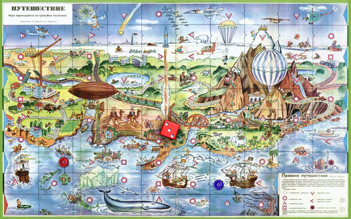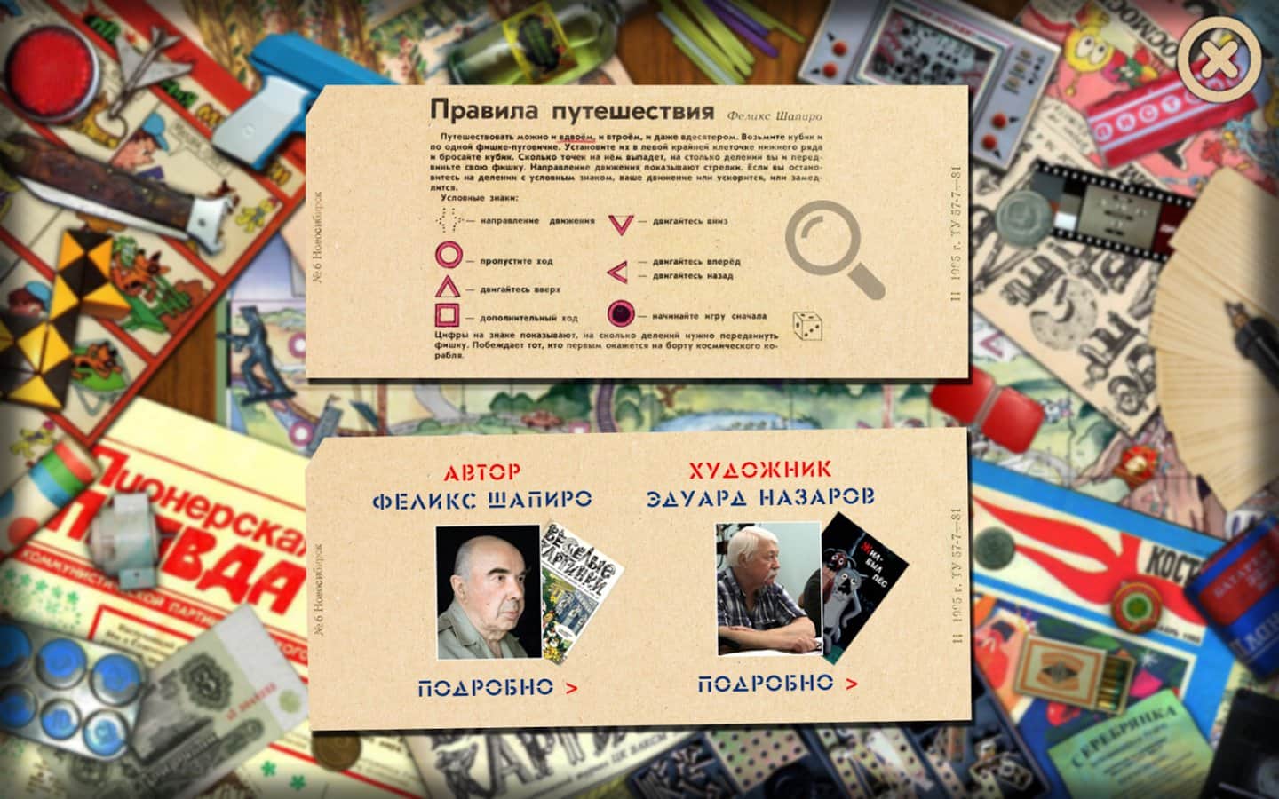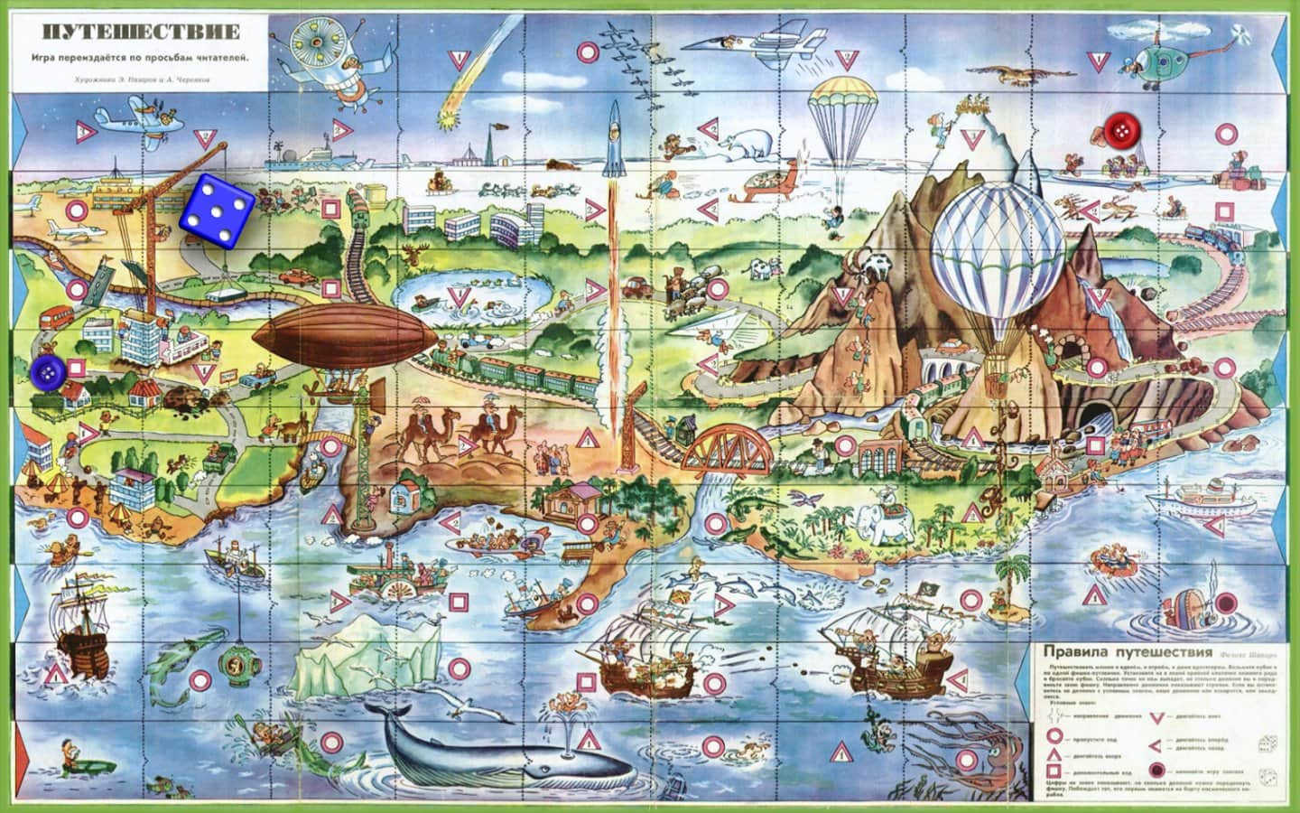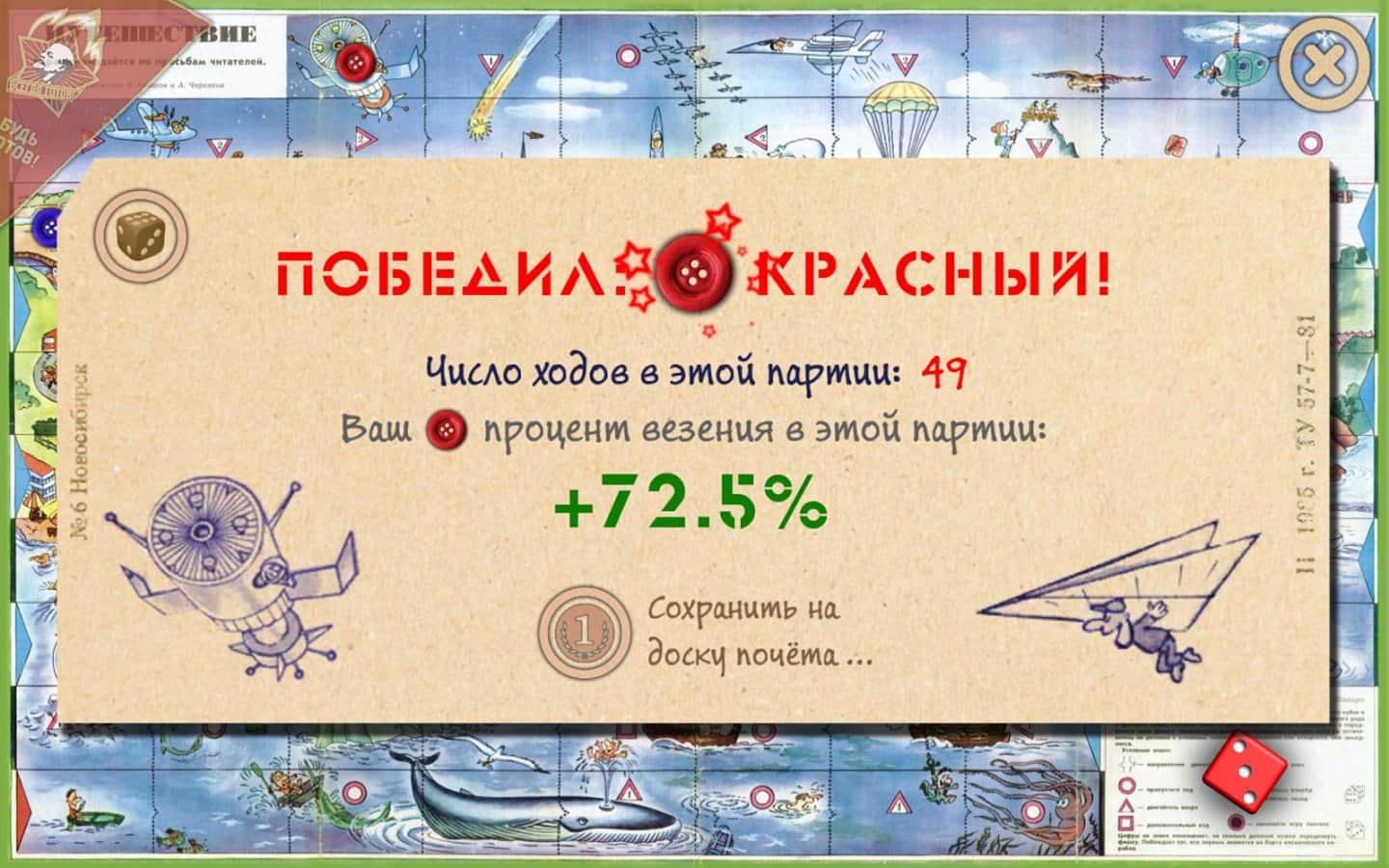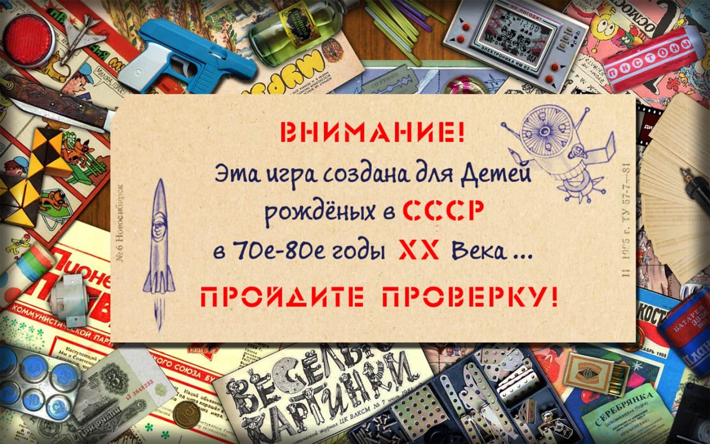 Подорож в СРСР - Ця гра була створена за настільній грі "Подорож" яка періодично публікувалася в дитячому журналі «Веселі Картинки» у період з 1973 по 1985 рік. Гра створена для дітей з радянського минулого, щоб не забути і нагадати про веселих і не легенів днями радянських дітей. А нинішнім дітям показати, як, і у що грали їхні батьки і старші брати, сестри. Все що вам потрібно, так це пройти тест на розуміння радянського життя, а після, вам буде потрібно тільки удача, щоб кинути кубик з великим числом ніж у вашого суперника :)