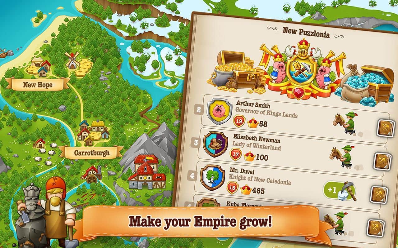 Напевно може здатися що Puzzle Craft це чергова аркадна головоломка з серії " три в ряд, але це тільки на перший погляд. Насправді геймплей набагато глибше і різноманітніше. І якщо вже бути до кінця чесними, то варто зазначити, що це єдина гра в своєму роді. Для тих хто не знайомий з грою пояснимо основні аспекти ігрової механіки. Так в основі всього лежить геймплей запозичений у аркад три в ряд, але за допомогою складання різних послідовностей плиток ви будете отримувати різні предмети, навички, речі, будматеріали та інше. Все це ви будете використовувати для створення власної держави. Puzzle Craft 2 - продовження гри в якій розробники зберегли основні елементи, при цьому продовженні отримав масу нових і приємних доповнень. У тому числі більш широкі можливості для управління своєю імперією, наприклад магію, більш масштабні завдання і багато іншого.
