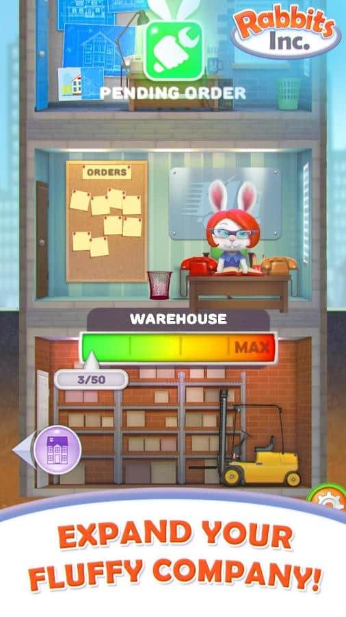 Rabbits Inc. - Це корпорація яку заснував один маленький але дуже цілеспрямований кролик! Його мрія була побудувати космічний корабель і відправитися до зірок, і з допомогою цієї самої корпорації він повинен буде зробити це. Ваше завдання дуже проста, потрібно будувати офіси, наймати працівників і намагатися змусити їх працювати! Це буде не такою вже й простим завданням, адже кожен з працівників має свої параметри і навіть час сну! Виконуючи замовлення ви будете отримувати нові рівні і гроші що б розвивати компанію.