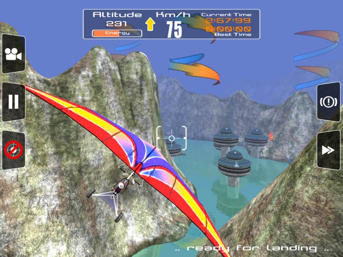 Racing Glider - игра на андроид, в которой вы будете летать на параплане. У вас захватит дух от высоты и открывающегося фантастического и реалистичного пейзажа. На ваш выбор несколько режимов игры, здесь каждый выберет для себя подходящий. Вы можете просто парить и наслаждаться видом, либо устраивать гонки на время.