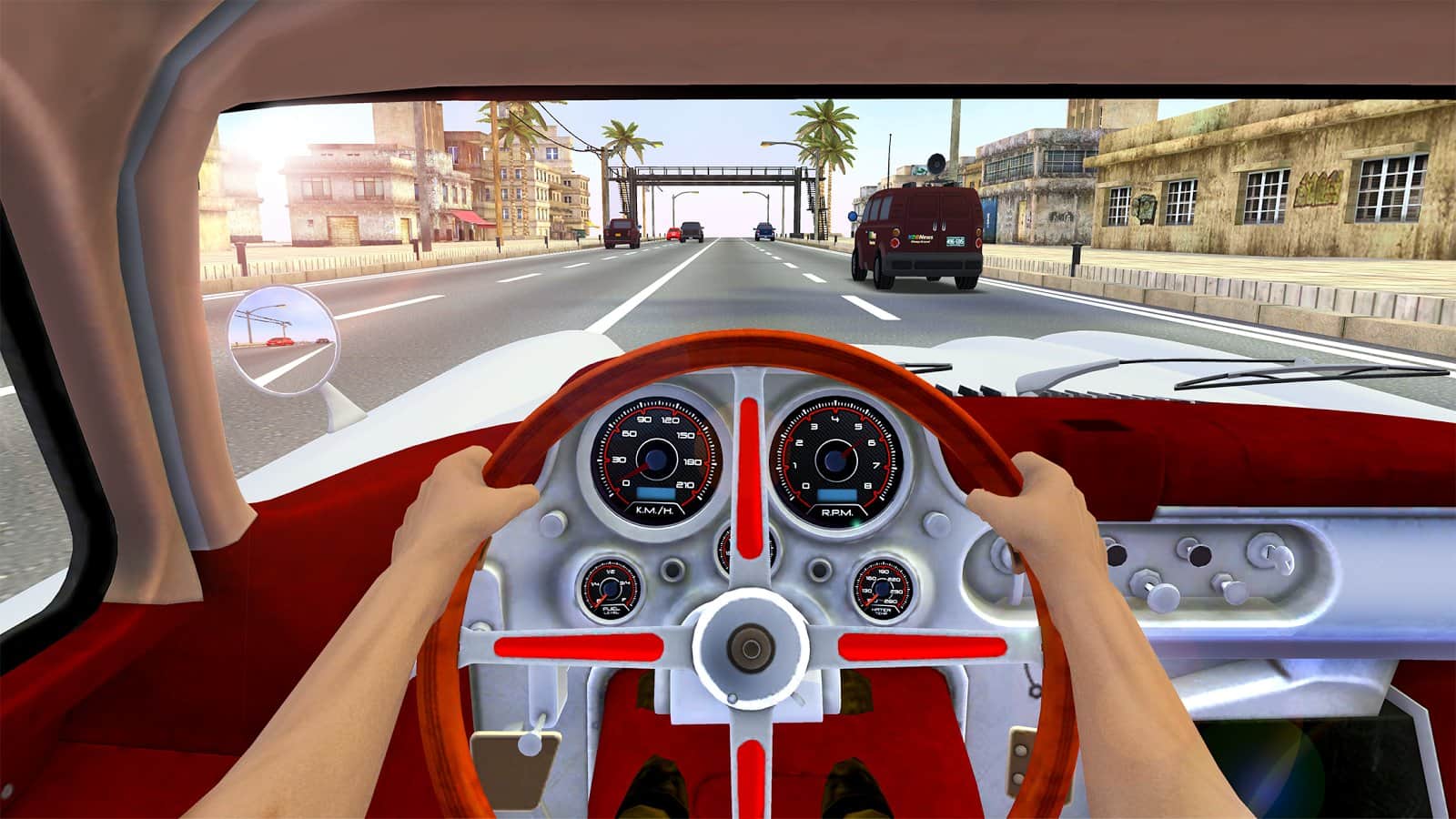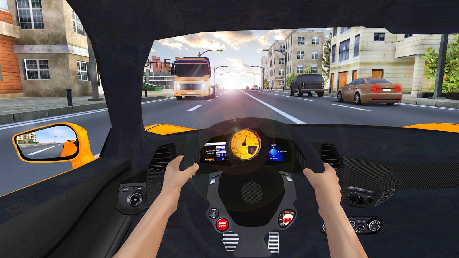 Racing in City 2 – візьміть під свій контроль гоночний автомобіль і ганяйте по жвавих вулицях на величезній швидкості. У цій грі ви зможете перевірити свої навички відмінного гонщика, беручи участь в захоплюючих перегонах цієї гри на андроїд. Переміщайтеся з боку в бік і робіть все можливе, щоб не зіткнутися з іншими машинами і пройти трасу за менший проміжок часу. Використовуйте нітро прискорення на прямих ділянках дороги і їдьте як можна швидше. Покращуйте свій автомобіль в гаражі після кожного заїзду і перекрашивайте його в різні кольори. Всього в грі представлено 12 різних автомобілів, три виду камери і безліч поліпшень.