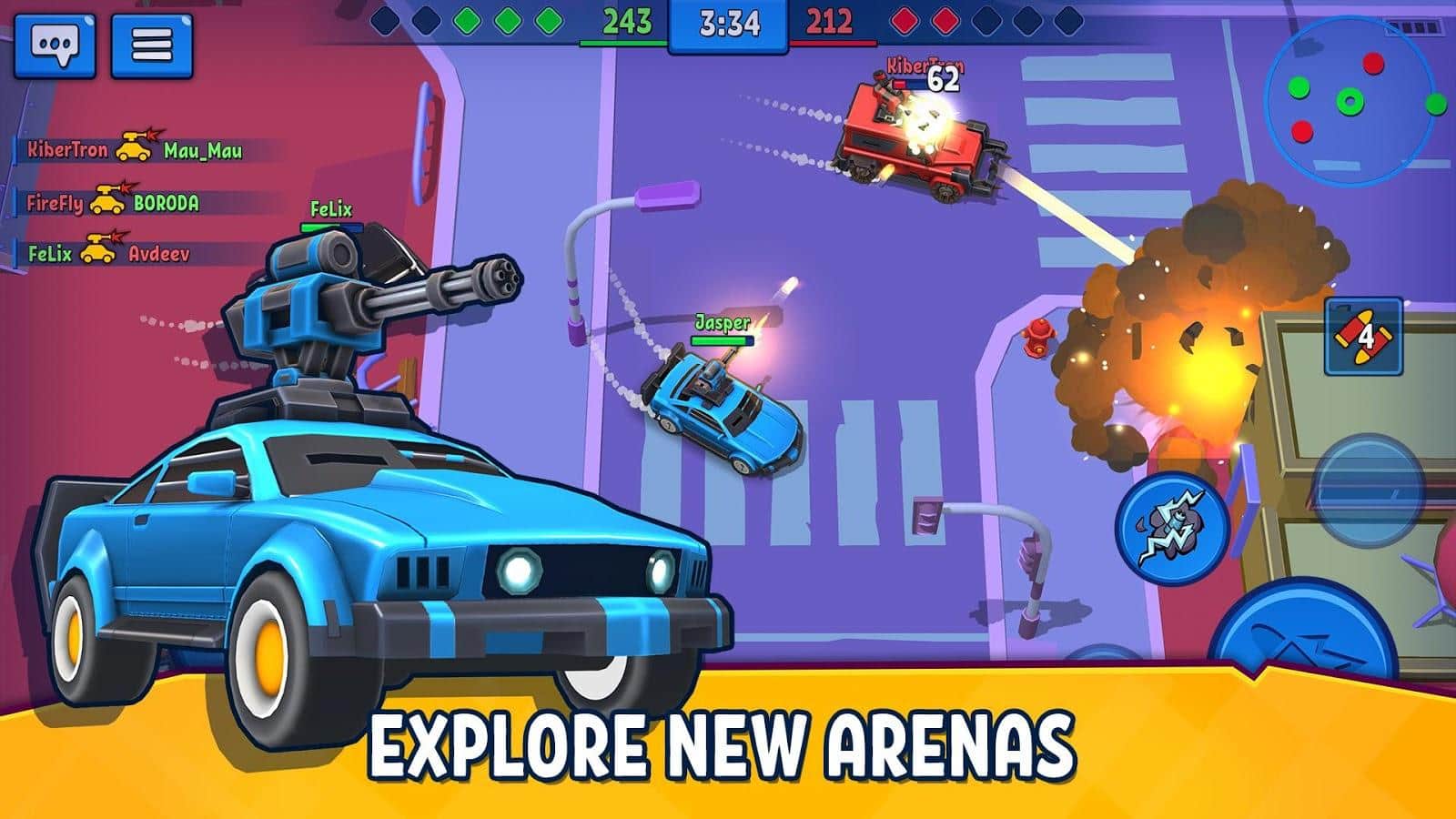 Rage of Car Force - Бої Машин Онлайн – аркадна online головоломка з елементами екшену для вашого смартфона. В даної грі ви зможете зібрати команду з кращих гравців або своїх друзів і відправитися в бій на різних машинах смерті. Прийміть участь в командних битвах 5 на 5 на різних локаціях з застосуванням сотень різновидів зброї. Почніть свою кар'єру з самого низу, виберіть авто зі списку доступних і поліпшите його можливості. З часом ви заробите грошей і досвіду, щоб придбати більш потужну техніку. Беріть участь в турнірах, продумувати тактику ведення бою і трощіть всіх на своєму шляху. Для цього у вашому розпорядженні бластери, гармати, шипи, ракети, кулемети та багато іншого.