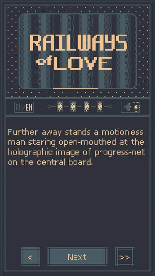 Railways of Love – інтерактивна гра на андроїд, де ви будете впливати на долю трьох осіб. У цій грі ви опинитеся в поїзд, де в одному з купе їдуть додому з міста майбутнього двоє чоловіків і жінка. У цій грі ви будете допомагати героям по ходу їх діалогів зізнатися в своїх почуттях. Зробити це буде не просто, але по ходу дії ви будете дізнаватися більше про минуле кожного героя і світ, в якому вони живуть. Відкривайте для себе додаткові можливості, які дозволять вам впливати на розмову героїв і долю окремо.